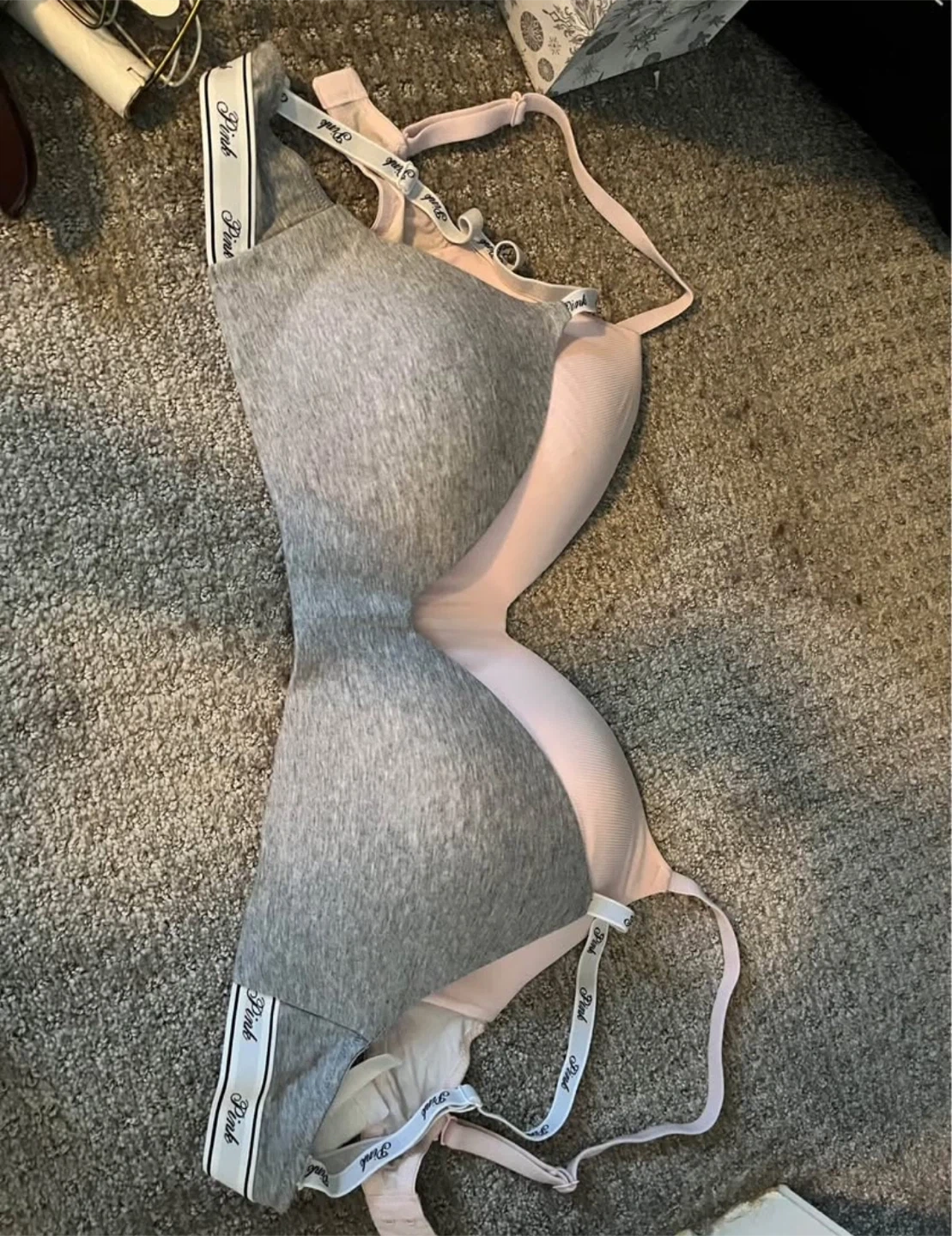 Selling two Victoria's Secret Pink bras. Tag was cut before realizing they are the wrong size. Worn once. Size 34 DD.