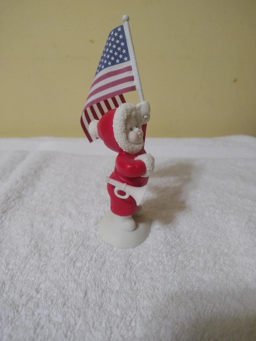 A charming figurine of Santa Claus holding an American flag! Perfect for adding a touch of patriotic holiday cheer to your home decor. The figurine is in excellent condition and ready to bring joy to its new owner