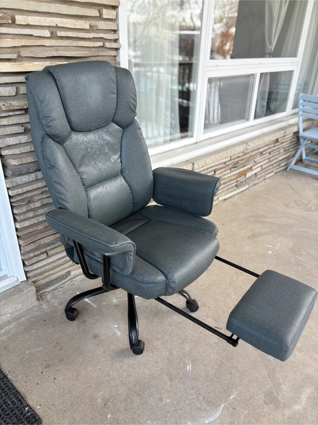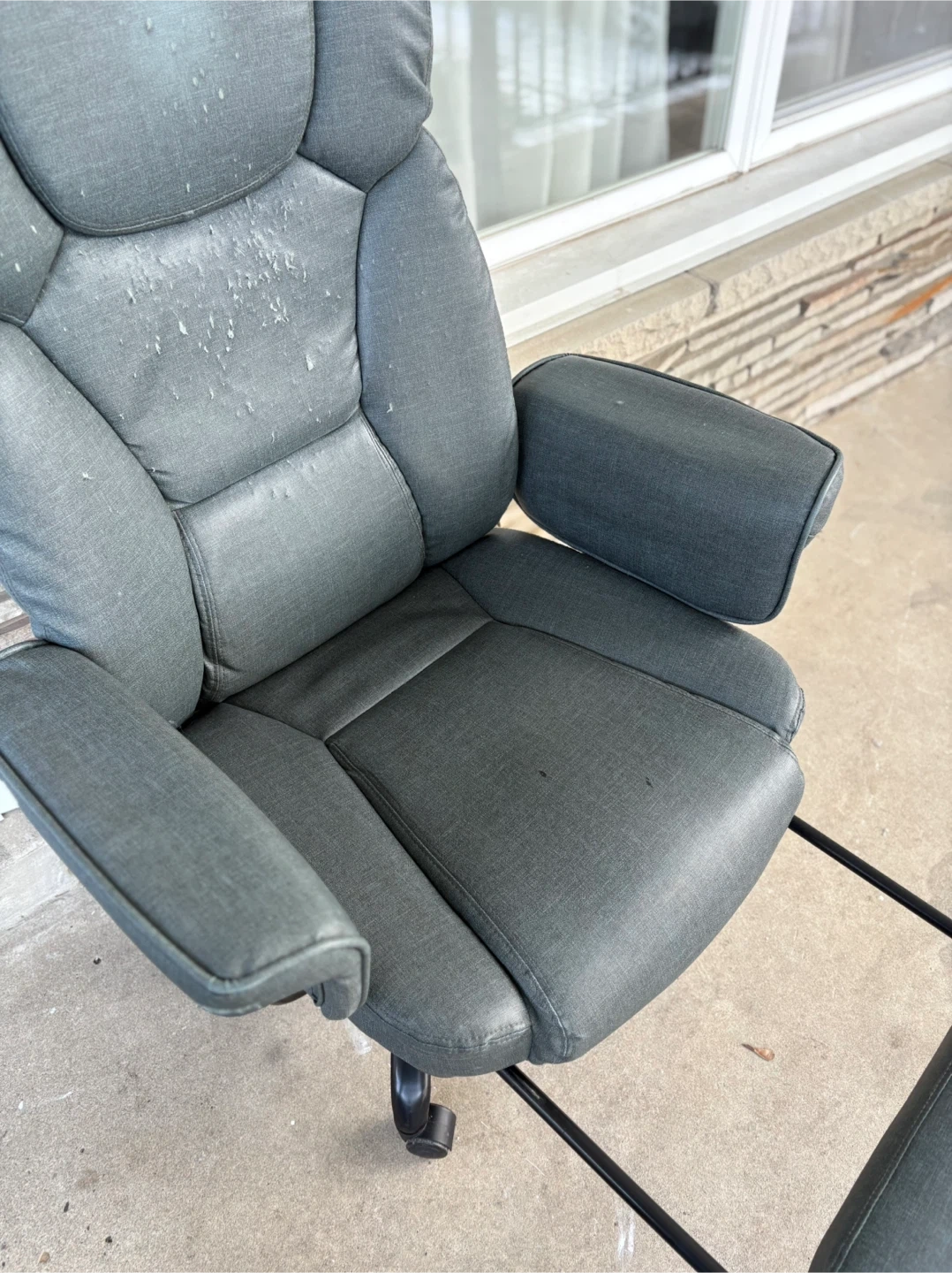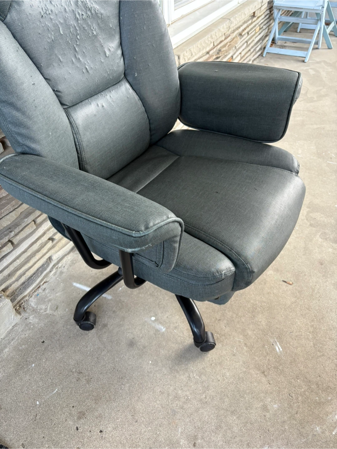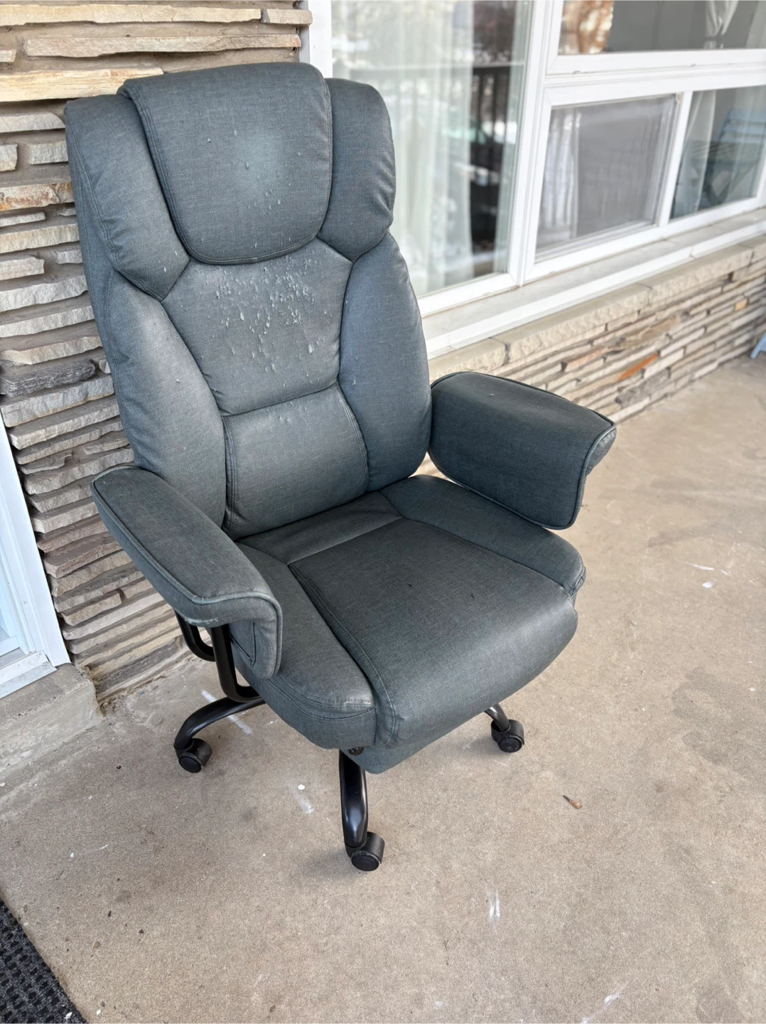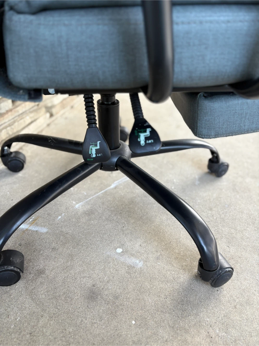 Selling a grey office chair. It has adjustable height settings for maximum comfort. Please note there are some signs of wear on the seat. The chair function is good .