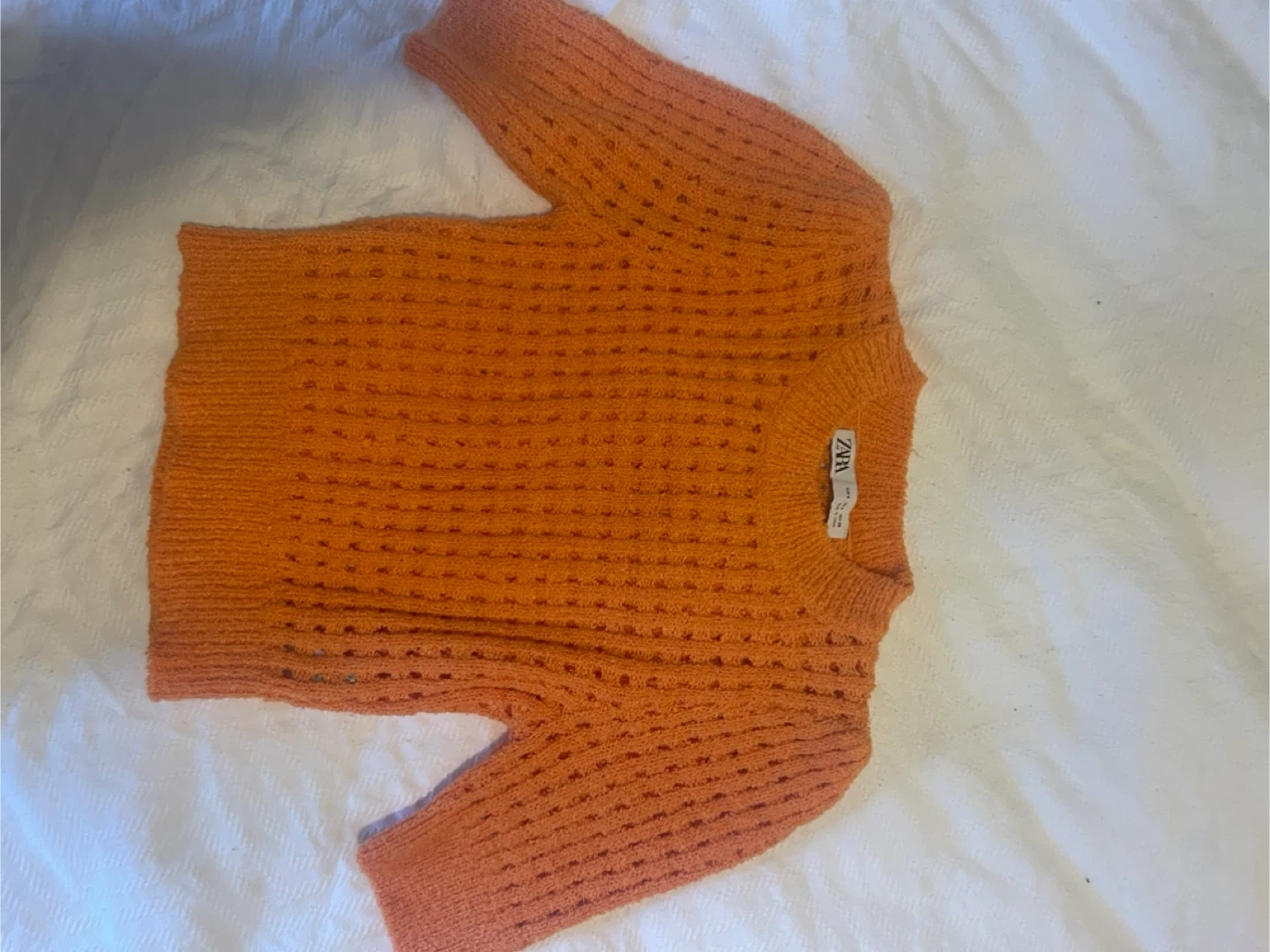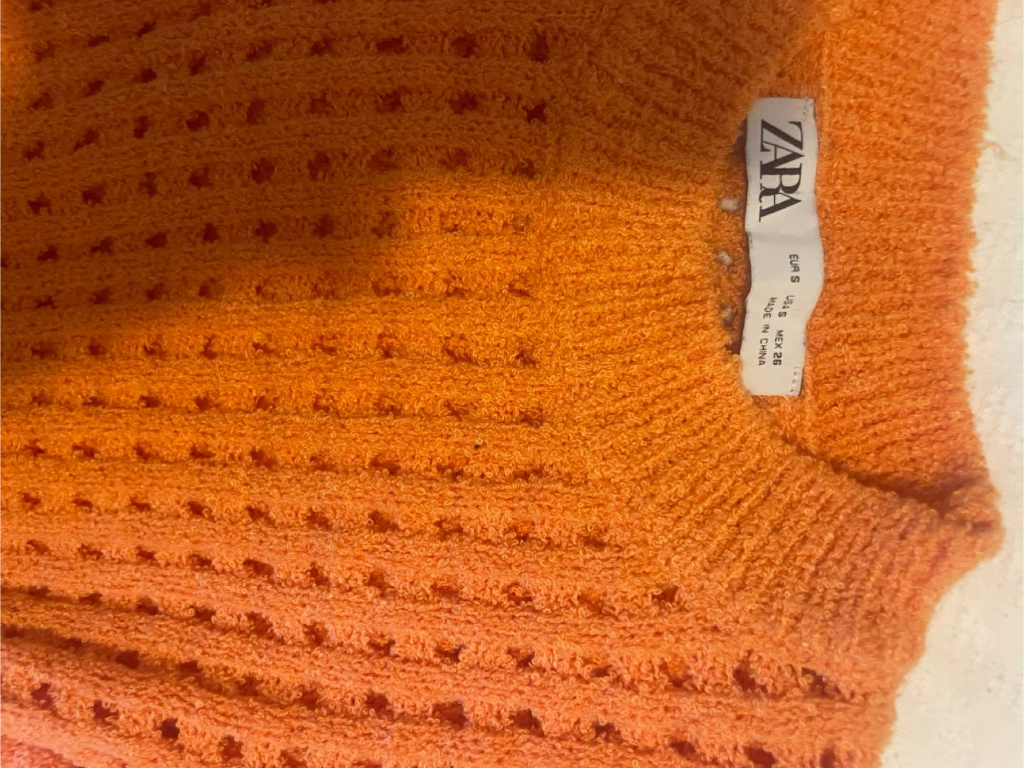 Cozy Zara knit sweater in a vibrant orange colour. It's a size small and in great condition! Perfect for adding a pop of colour to your wardrobe.