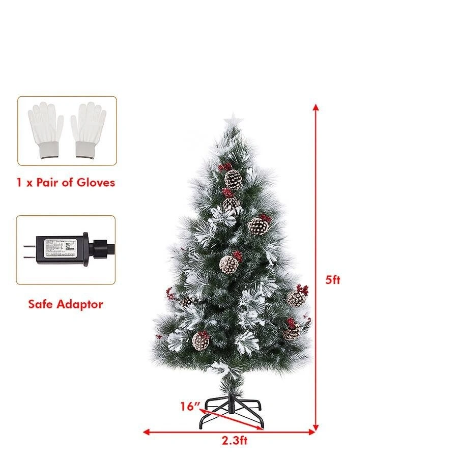 Brand new condition. Illuminate your Christmas with 76 bright LED lights that are evenly distributed among the treetop star and 30 pine cone shell lights, while the optical fibers add a magical glow that delights every guest. Powered by a safe UL-certified adaptor, the Christmas tree offers 8 lighting modes including sequential, slo-glo, in waves, and combination, all easily adjustable using a light controller. Crafted from 100% new PVC, the tree is fireproof, non-allergenic, anti-fading, and odor-free, ensuring a safe and enjoyable festive experience. Supported by a folding metal stand, it provides excellent stability for home, office, or holiday gatherings. Made from PVC, optical fibers, and metal, it comes in one box, though the quantity may vary by batch. Let me know if you're interested!