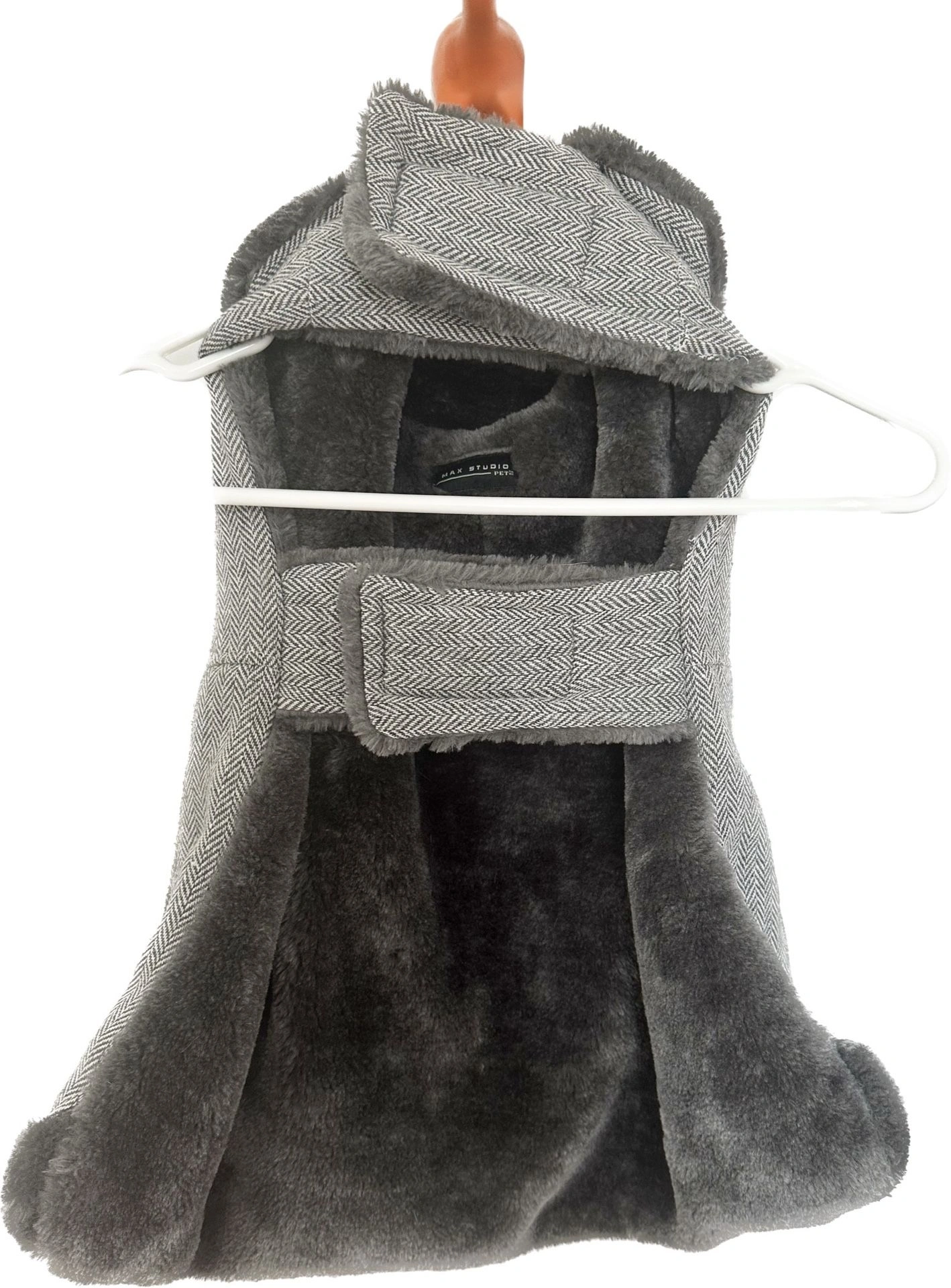 Adorable girl dog coat with fleece lining, pockets and leash hoop opening.