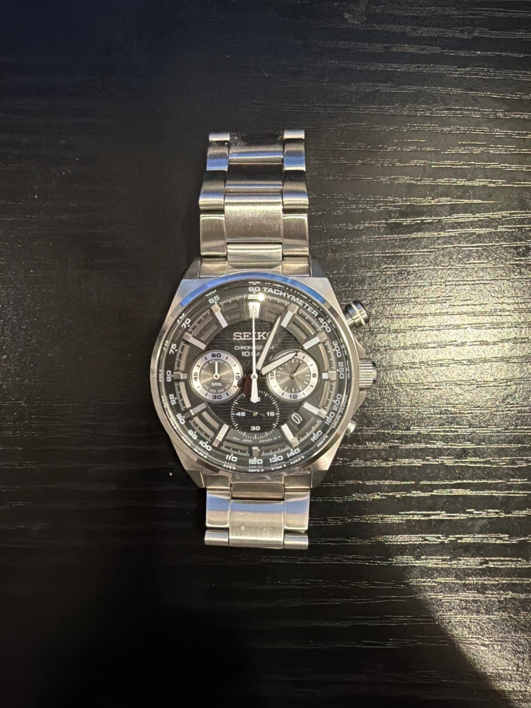 Selling a Seiko Chronograph watch in great condition. It's a stylish timepiece that would make a great addition to anyone's collection