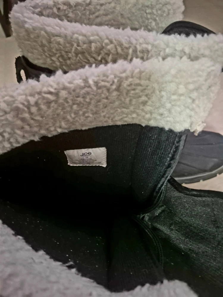 Selling a pair of men's black winter boots, perfect for keeping your feet warm and dry this winter! They feature a cozy faux fur trim and a lace-up design for a snug fit. Great for snowy days and outdoor activities