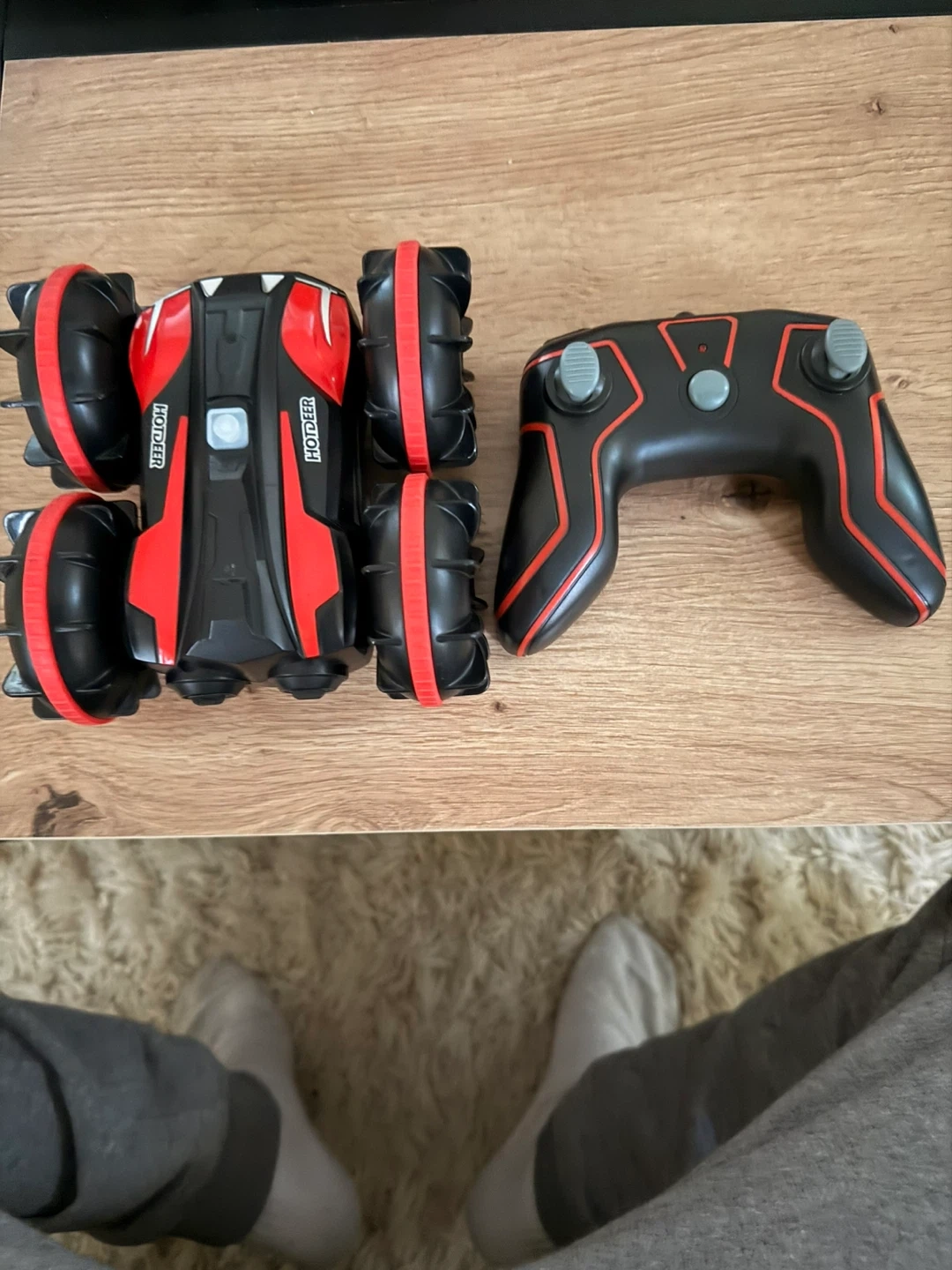 Selling a Hotder RC stunt car in great condition! It comes with a remote control. The car is red and black, perfect for some fun stunts