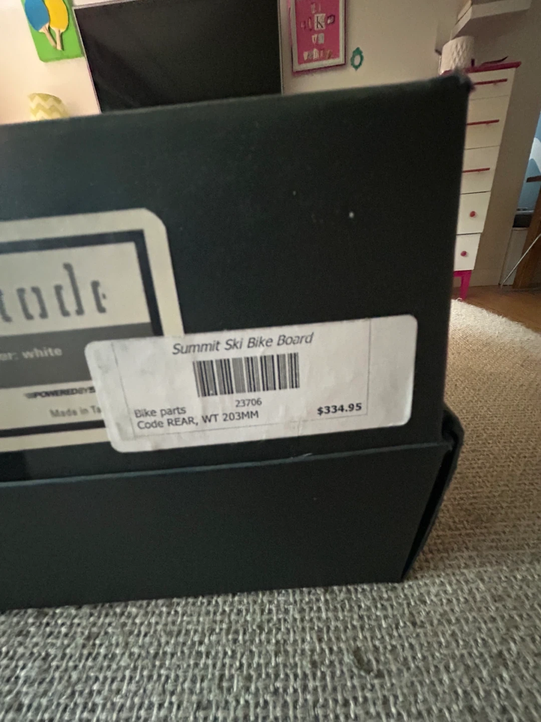Selling a Code Summit Ski Bike Board. It includes bike parts. The code is REAR, WT 203MM. Originally bought for $334.95. It comes with the box