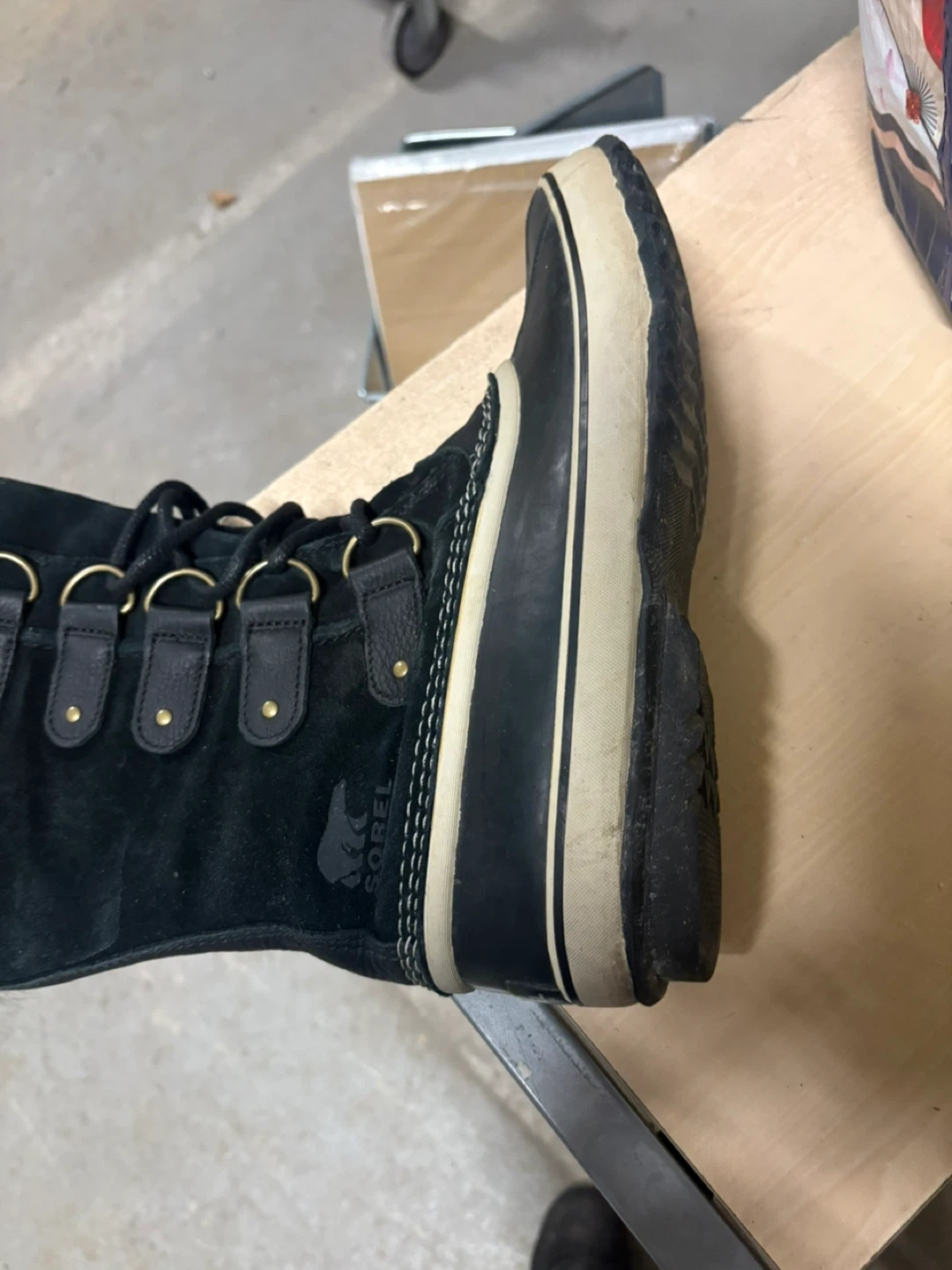 Selling a pair of Sorel winter boots. They are black with fur trim and have a lace-up front. Great for keeping your feet warm and dry during the winter months!