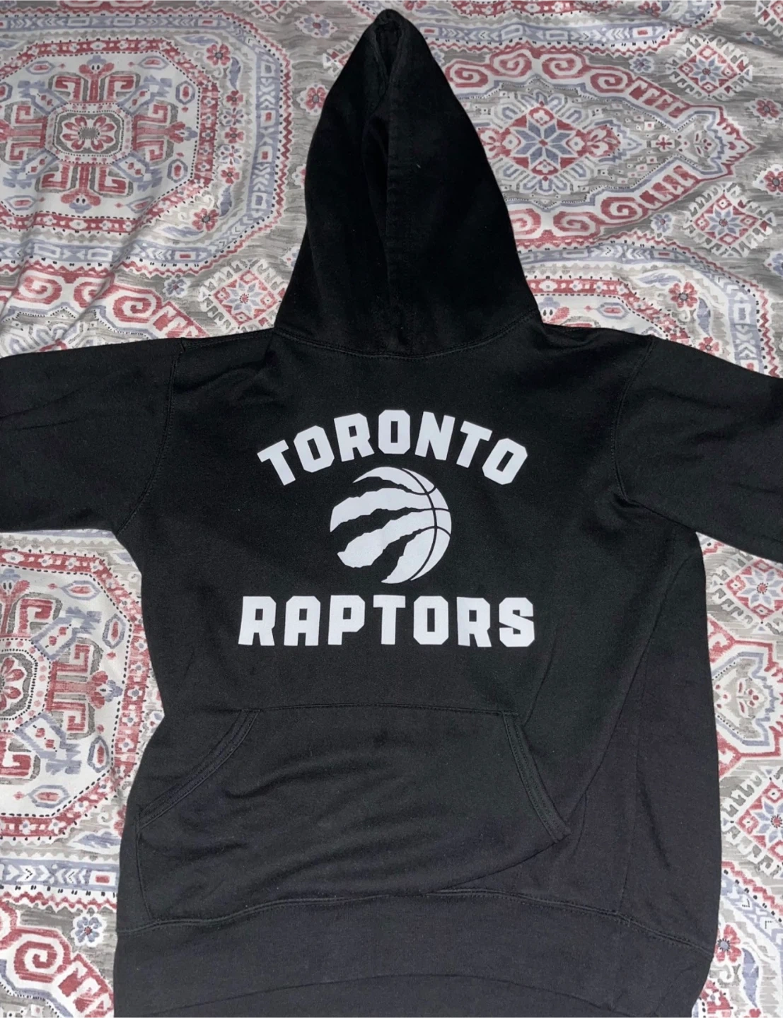 Selling a Toronto Raptors hoodie in size medium! It's black and features the classic Raptors logo. Great for showing your team spirit!