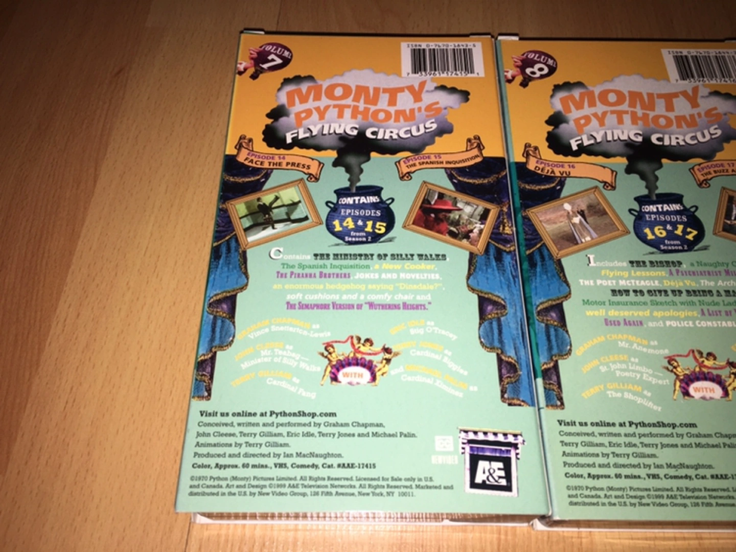 Selling three Monty Python's Flying Circus VHS tapes: Volumes 7, 8, and 9.