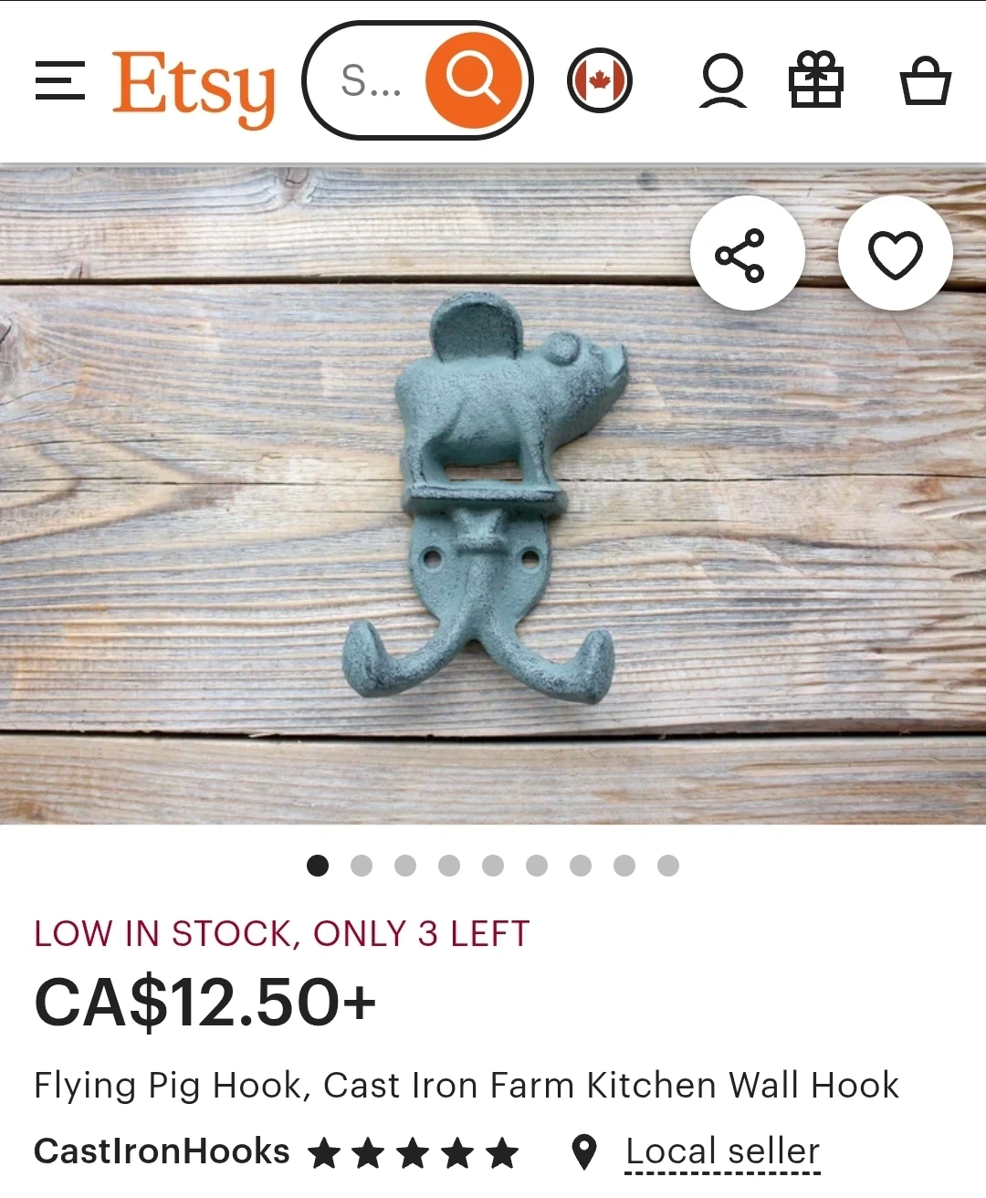 Selling new cast iron wall hook shaped like a flying pig!