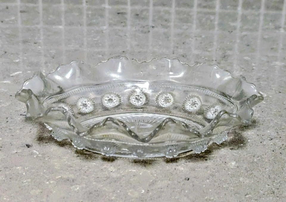 Add a touch of vintage elegance to your home with this beautiful oval dish by Davidson Glass.
