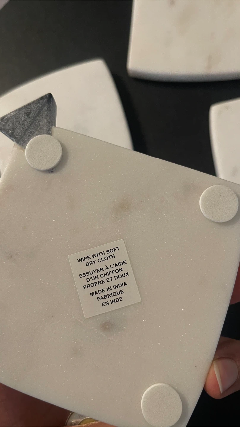 Selling a set of four marble coasters. They are in great condition and ready to protect your furniture! The coasters are made in India and should be wiped clean with a soft, dry cloth