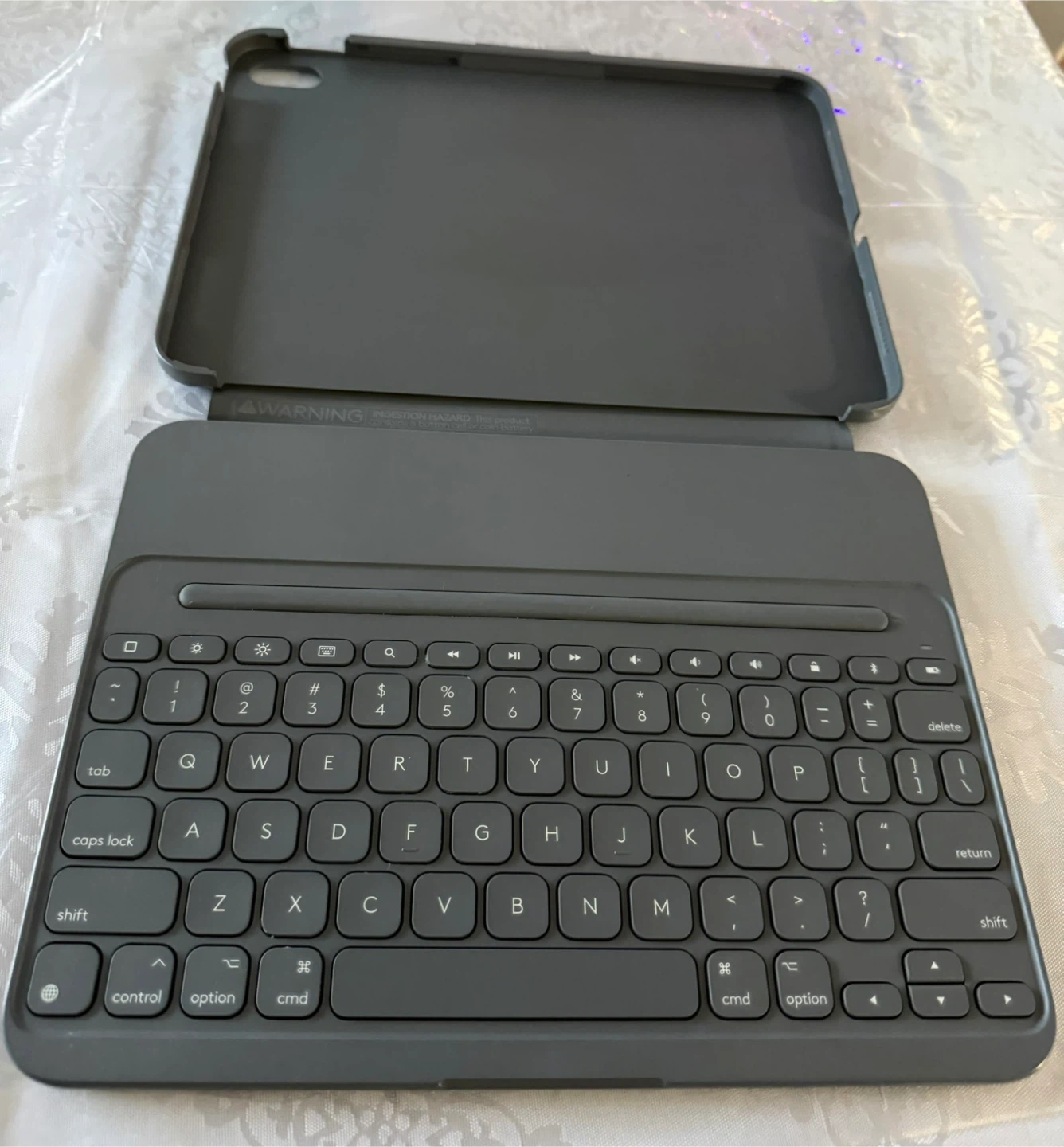 Selling a Logitech Slim Folio Keyboard Case in Oxford Gray for the iPad 10th generation. It features an integrated Bluetooth wireless keyboard.