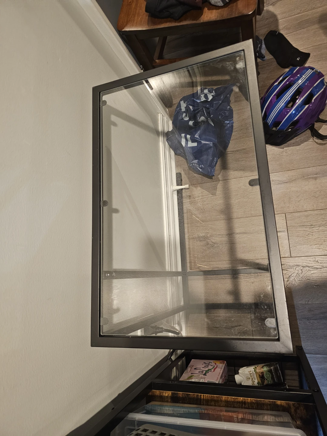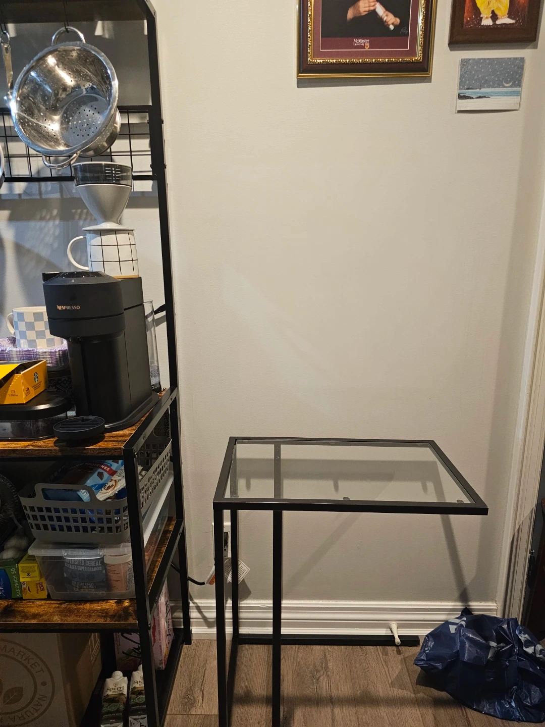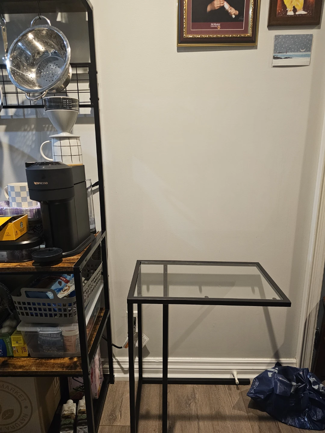 Selling a sleek black metal side table with a glass top. It's in great condition and would be perfect next to a couch or bed! It's super handy for holding drinks, books, or anything else you need close by