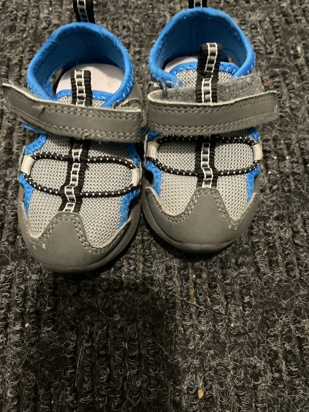 These adorable Stride Rite shoes are perfect for your little one! They are a size 5 and feature a cute grey and blue design. They are in good condition and ready for a new adventure!