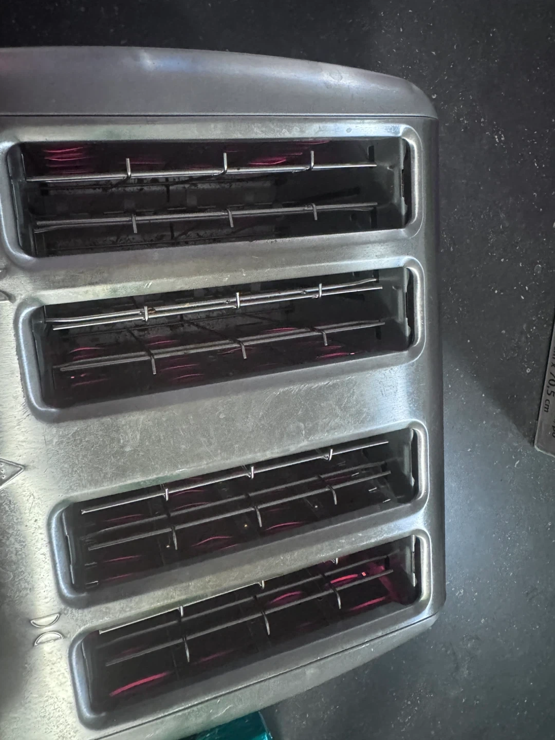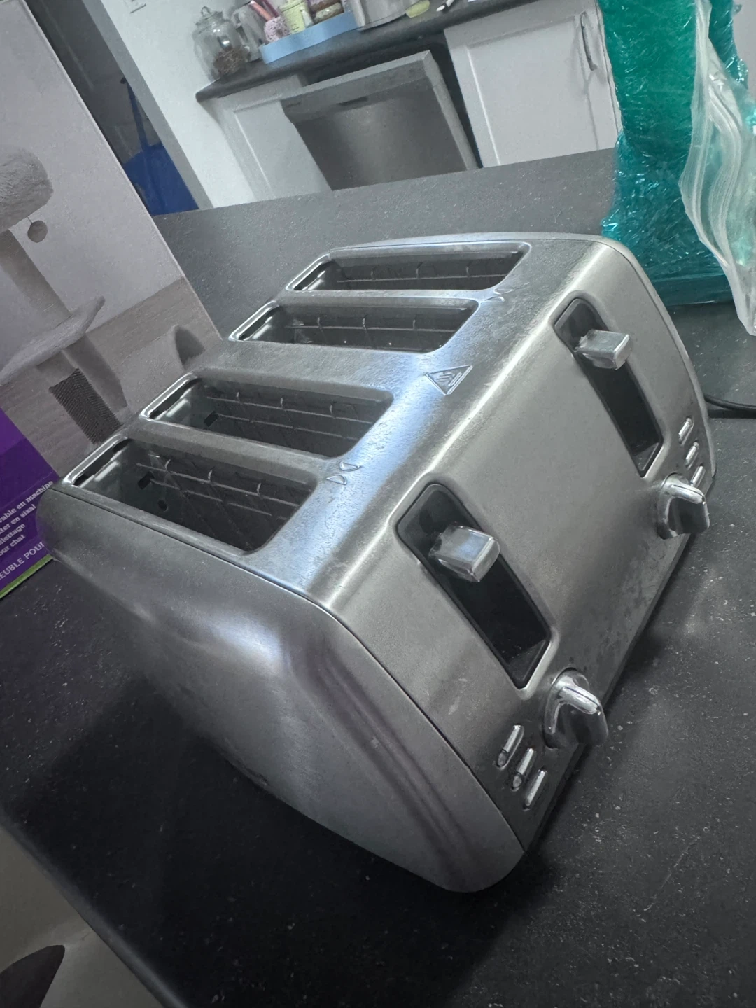 Selling a four-slice toaster. It's in used condition, but still works great for making toast for the whole family!