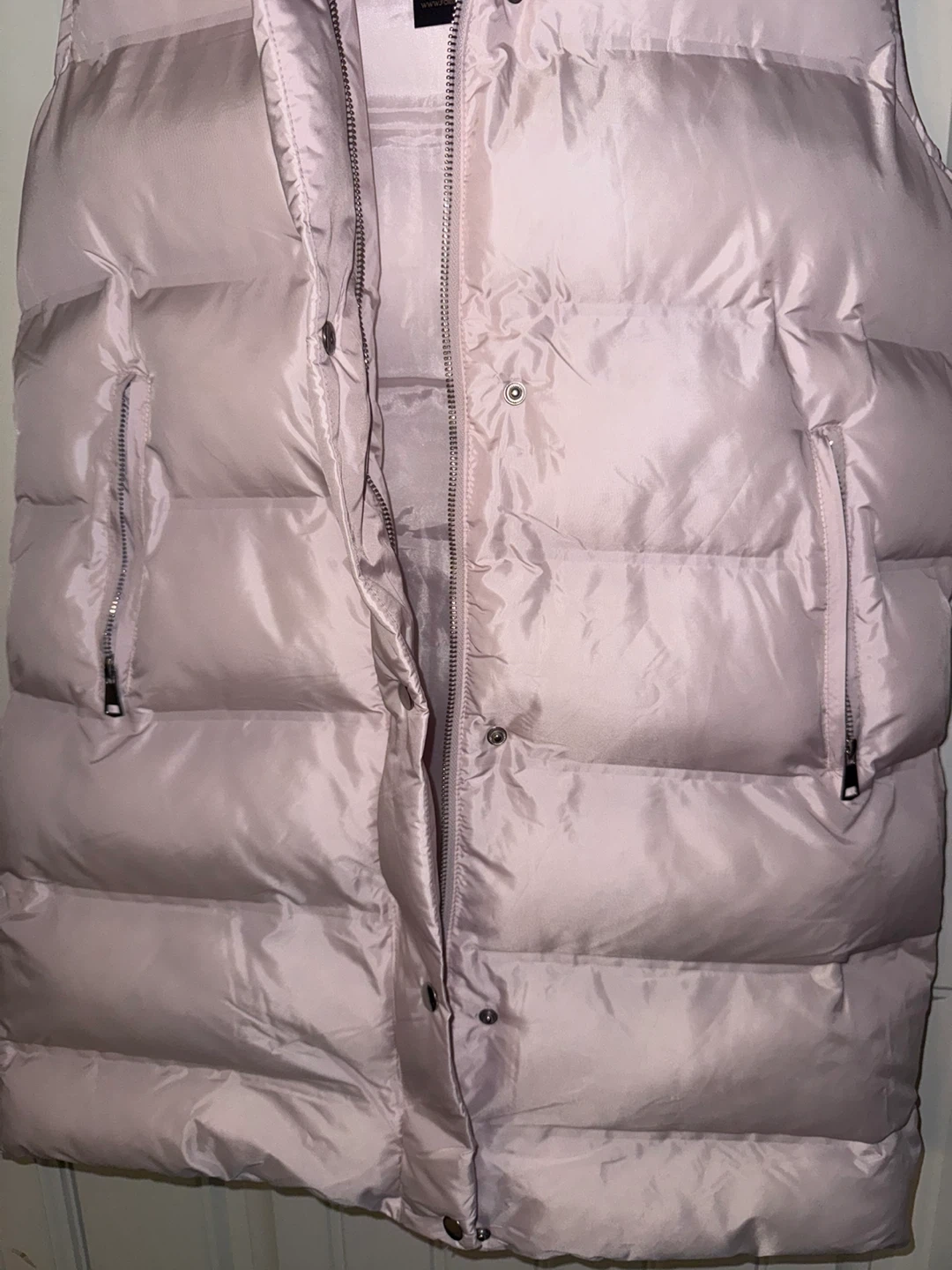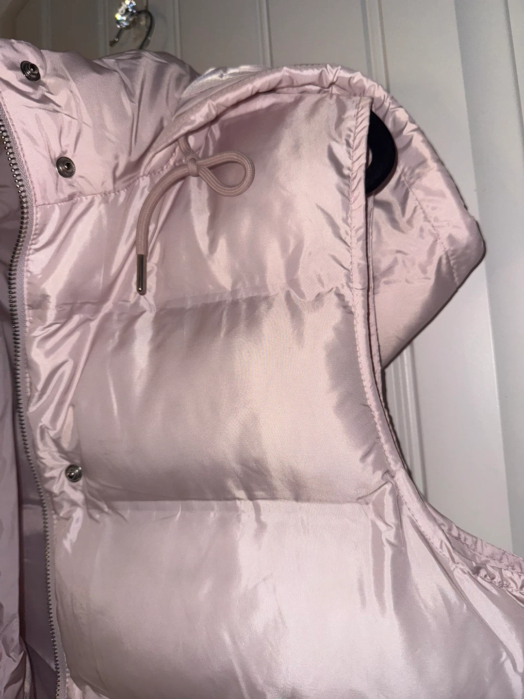 Here's a Forever 21 puffer vest in size M/M! It's a lovely light pink colour and has a hood. The original price tag shows it was $45.00