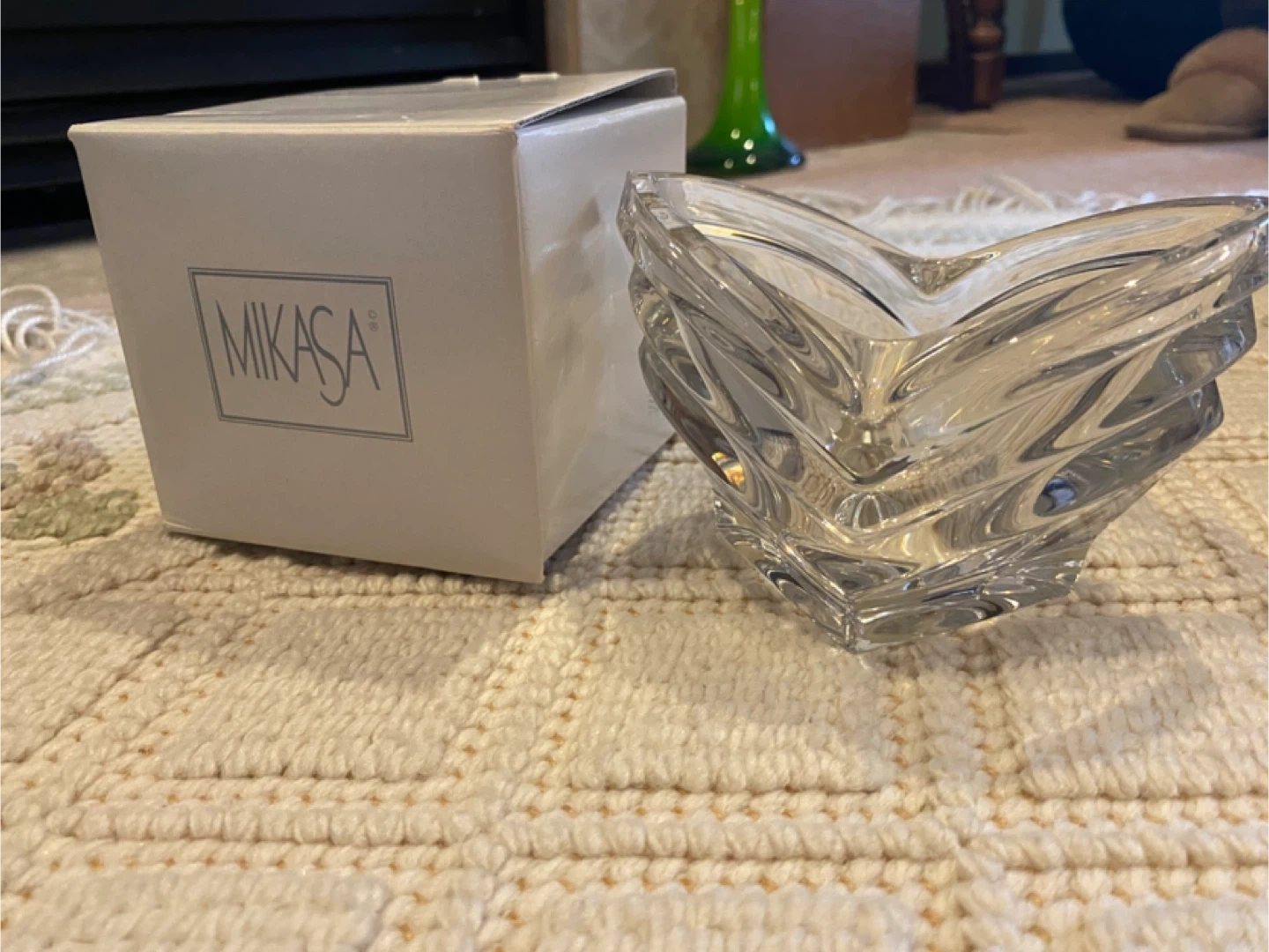 Selling a Mikasa Deco candleholder. It's 4 1/2" and comes with the original box! This one-piece candleholder was made in Germany and is in great condition
