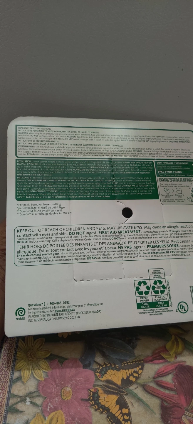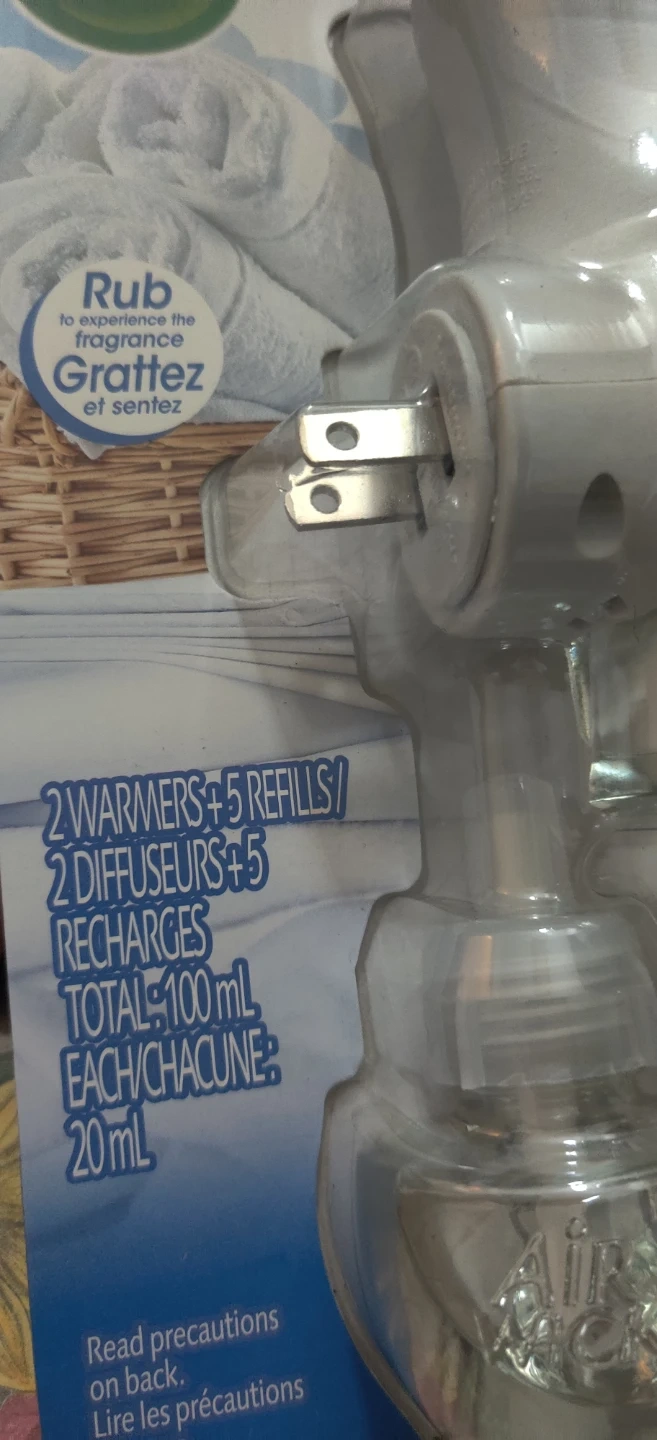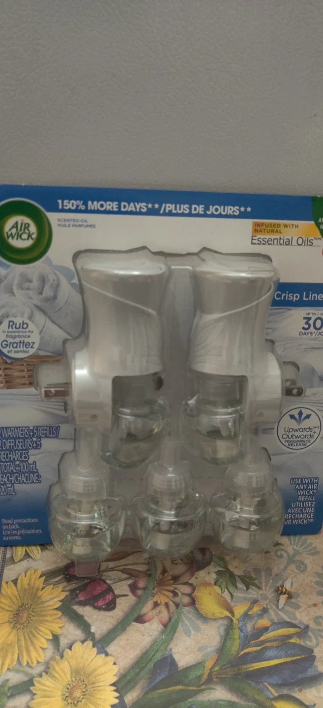 Freshen up your home with this Air Wick Crisp Linen scented oil warmer. It comes with 2 warmers and 5 refills, each containing 20 mL of scented oil. Enjoy up to 300 days of freshness! I will only reserve for 7 days .