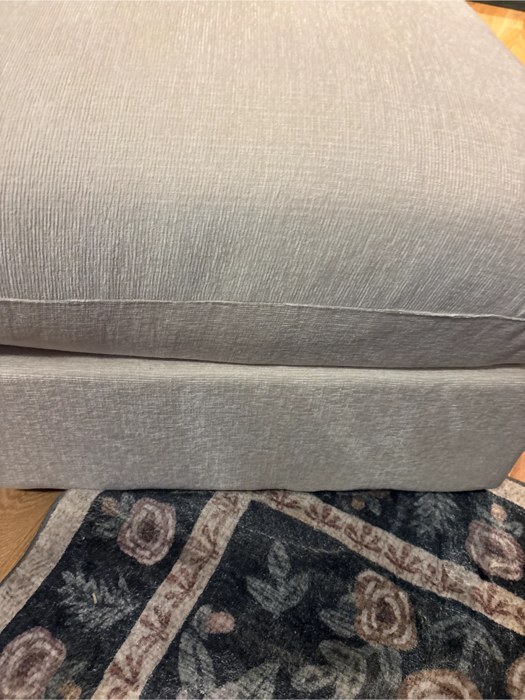 Selling a beige ottoman in good condition. It's a great piece to add to your living room or bedroom for extra seating or as a footrest.