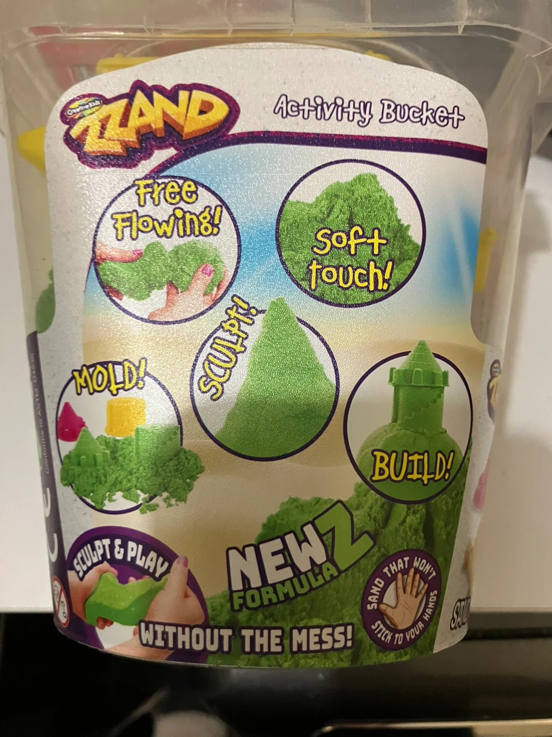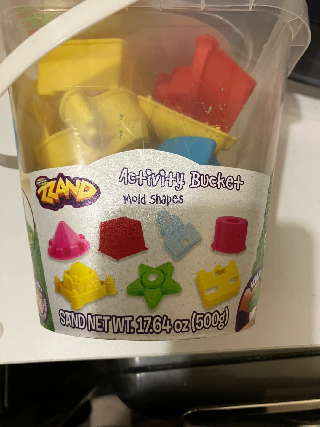 There are 2 available! Zzand Activity Bucket is a fun set for sculpting and playing, with a new formula that won't stick to your hands. The bucket contains sand and mold shapes for building different things.
