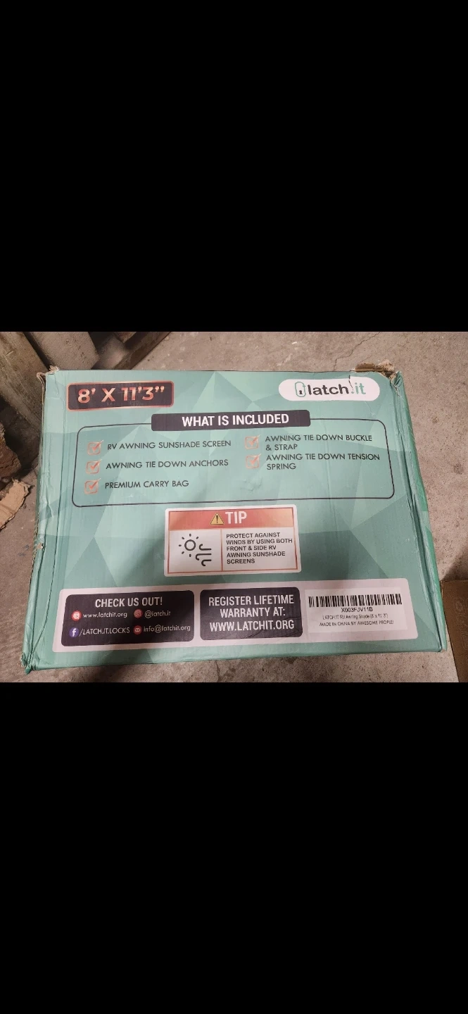 Selling a Latch.it RV awning sunshade screen. It's sized at 8' x 11'3".