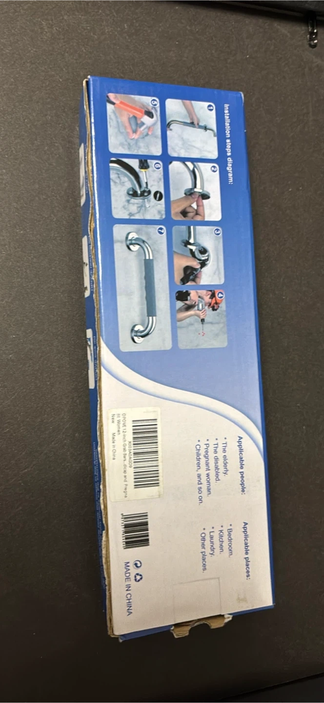 Selling an OPOVE 12-inch anti-slip stainless steel grab bar. It's designed to provide added safety and support in any room in the house, especially useful for the elderly, pregnant women, and those with disabilities. This grab bar is versatile and can be installed in bathrooms, kitchens, laundry rooms, and other places where extra support is needed. The box includes installation stage diagrams to help with setup Paid over $100