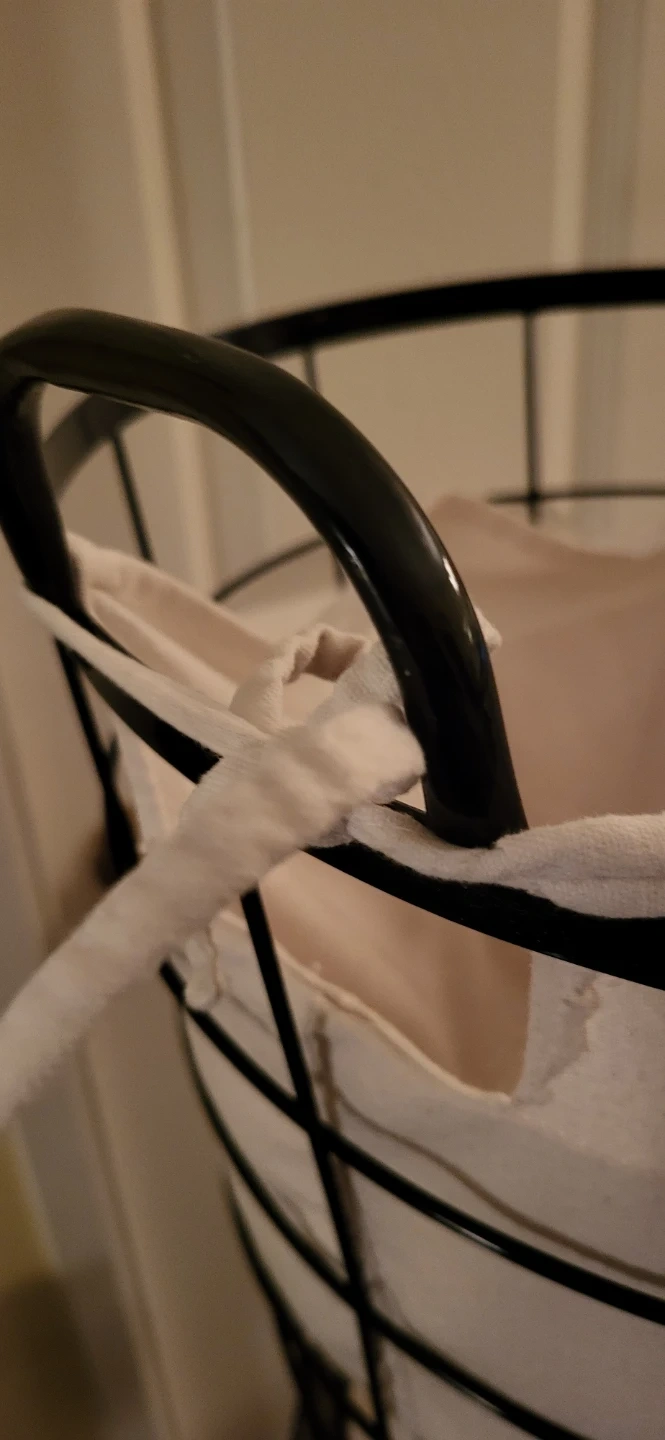 Laundry basket with a black wire frame and a removable canvas liner. It's in great shape and ready to use!