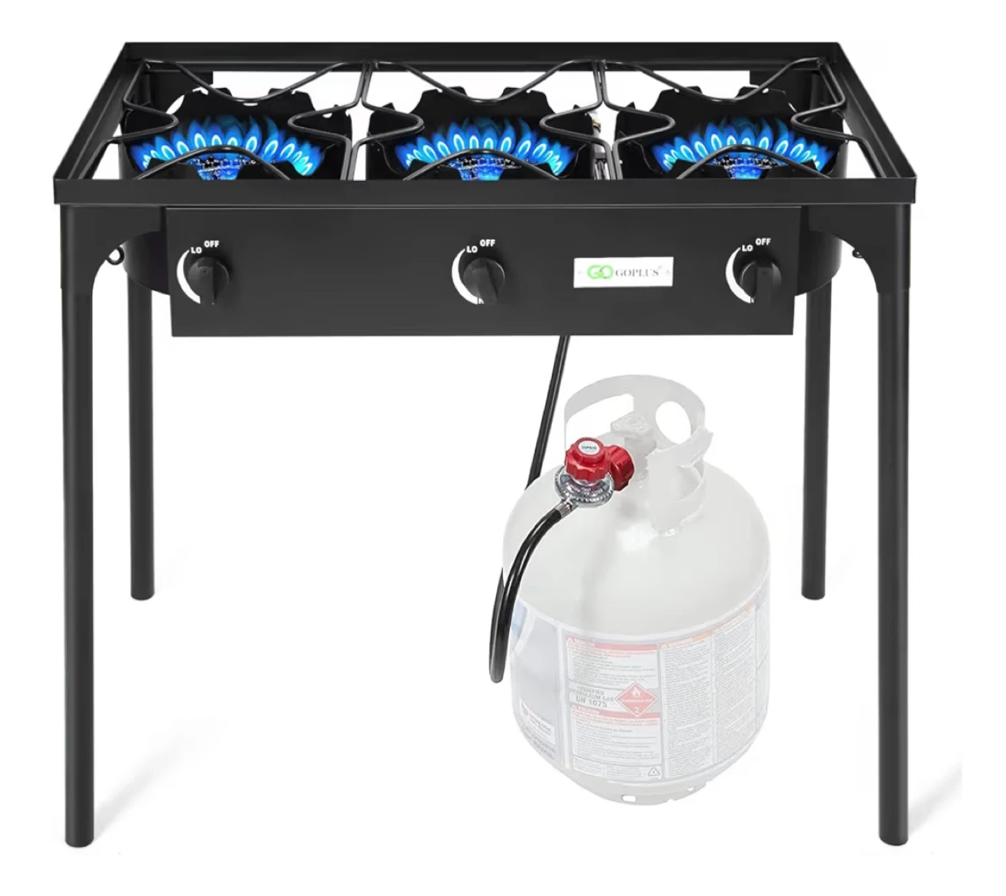Selling a Goplus triple burner outdoor stove. It's perfect for camping or outdoor cooking! This durable stove is designed for high heat output and stable performance. It can handle large pots and pans with ease. Great for outdoor gatherings and events