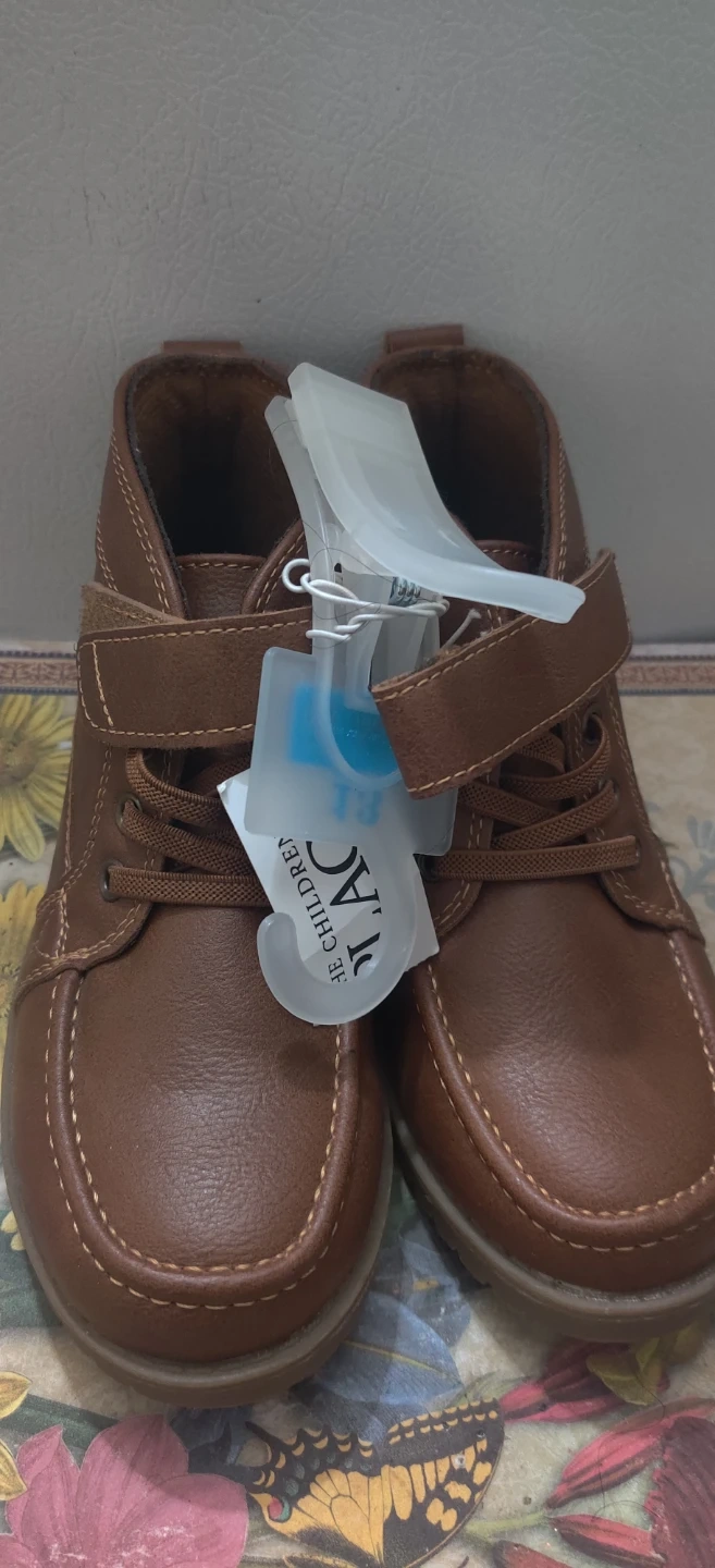 These are a pair of band new brown boots from The Children's Place, size 13. They are perfect for indoor or outdoor.I will only reserve for up to 7 days