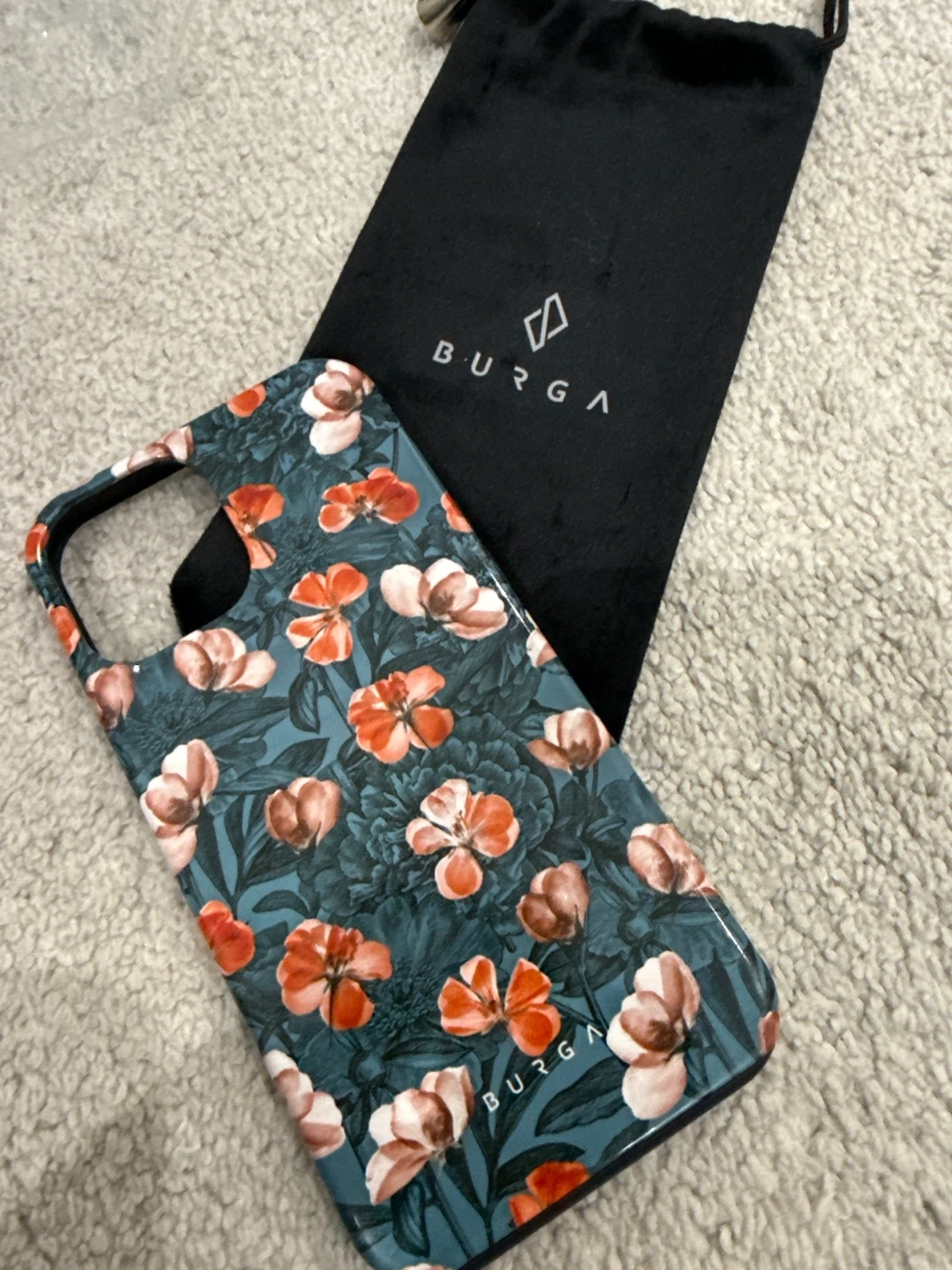 Selling a Burga iPhone case with a beautiful floral design! It comes with its original pouch. The case is in great condition and ready for a new phone.