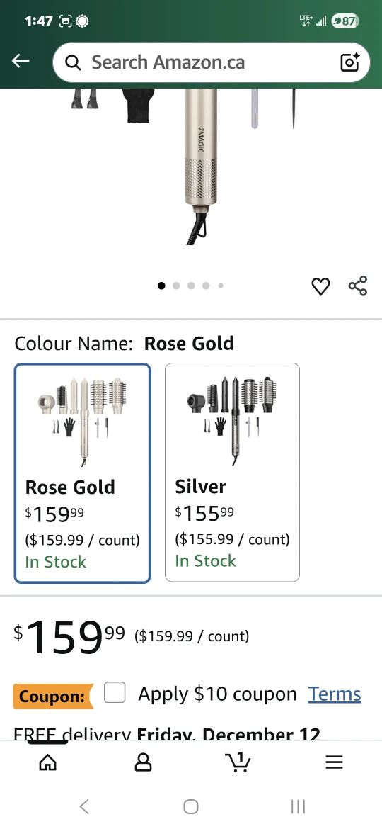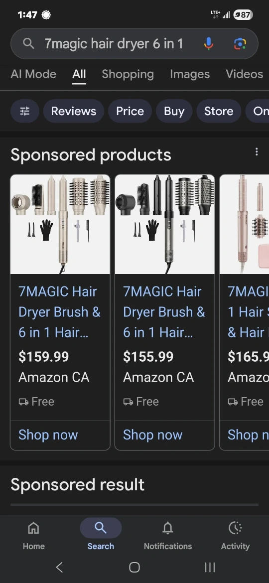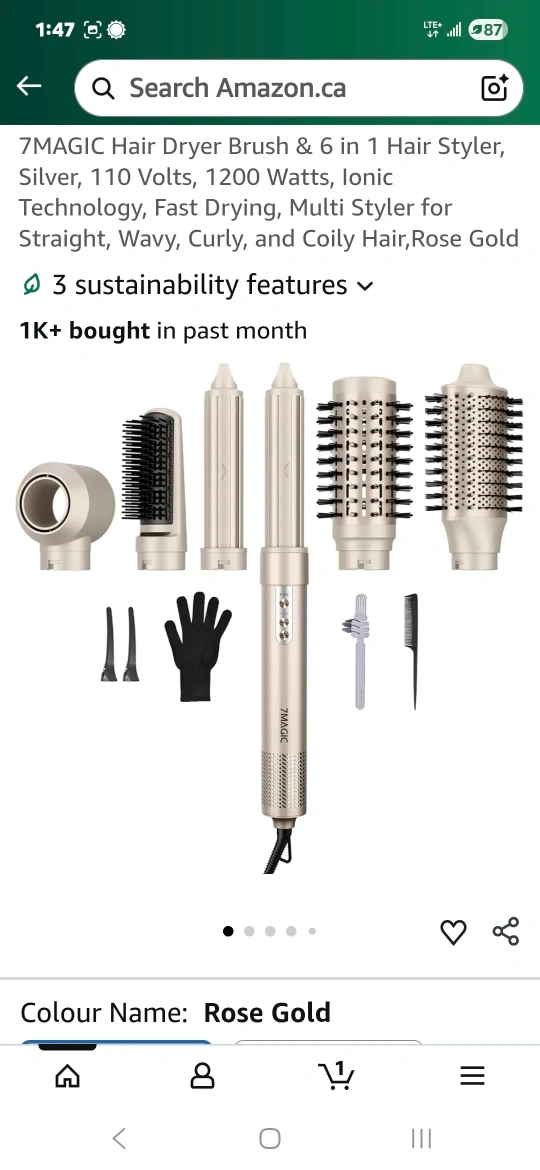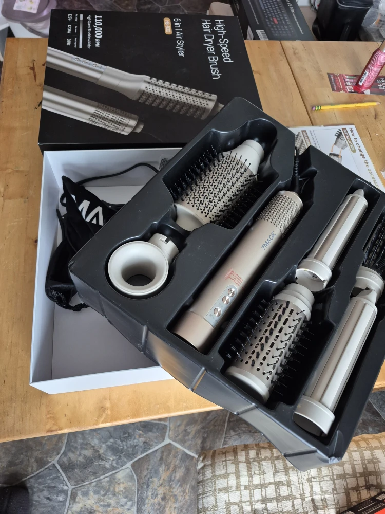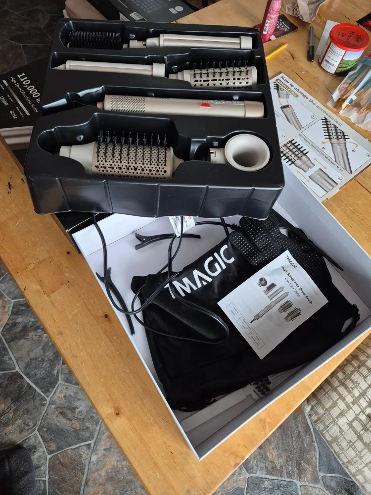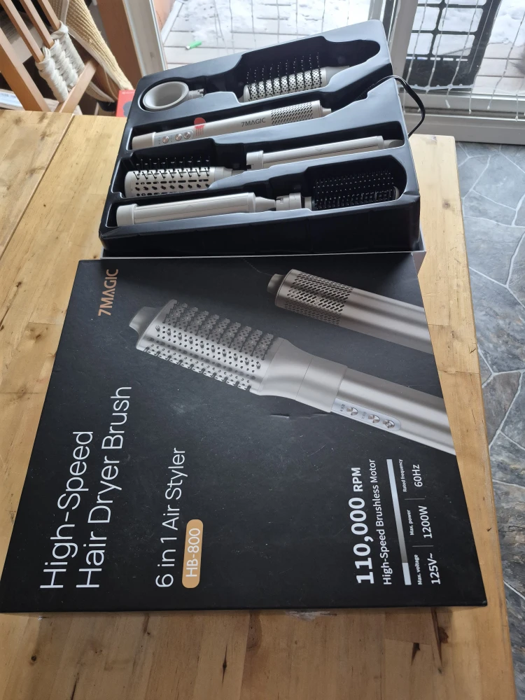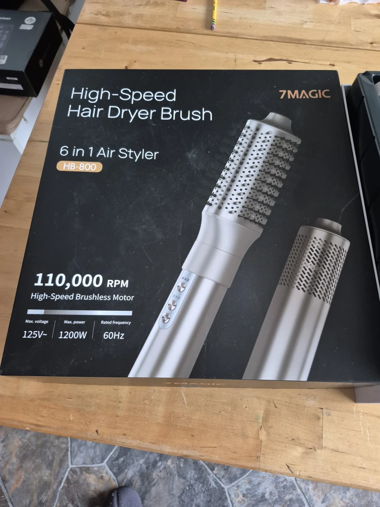 Selling a 7MAGIC High-Speed Hair Dryer Brush 6 in 1 Air Styler. It comes with the box and all the components! It has a high-speed brushless motor and is 1200W. This 6 in 1 air styler is perfect for all your hair styling needs