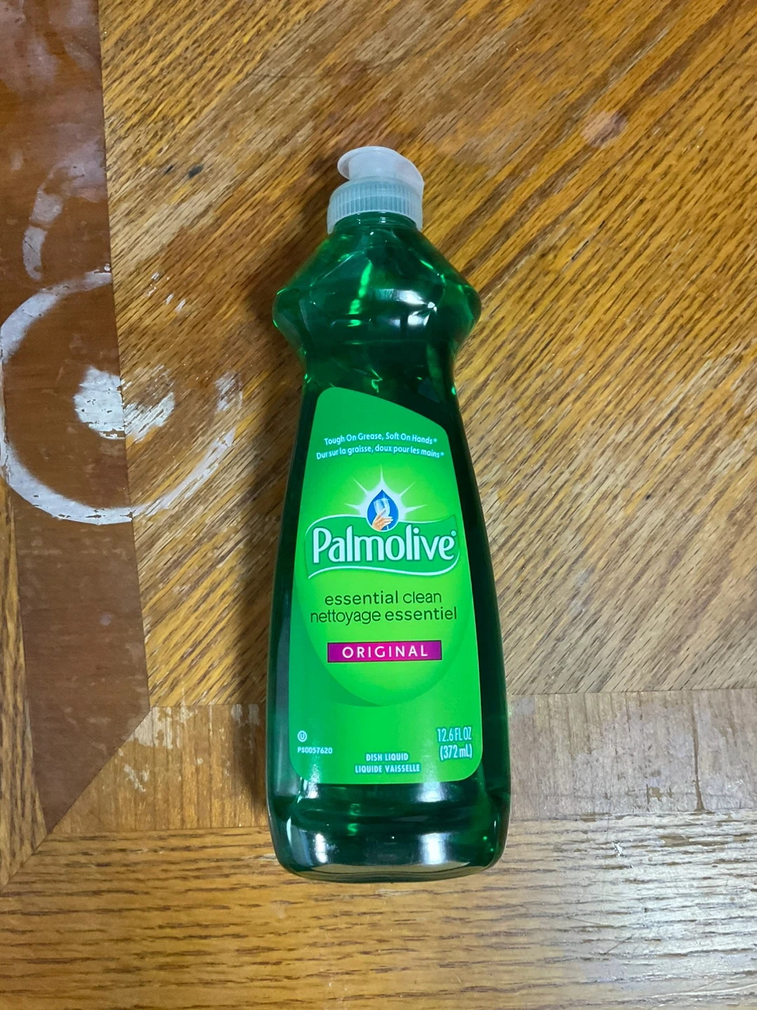 Selling a bottle of Palmolive Essential Clean Original dish liquid. It contains 12.6 fl oz (372 mL) of liquid. Tough on grease and soft on hands!