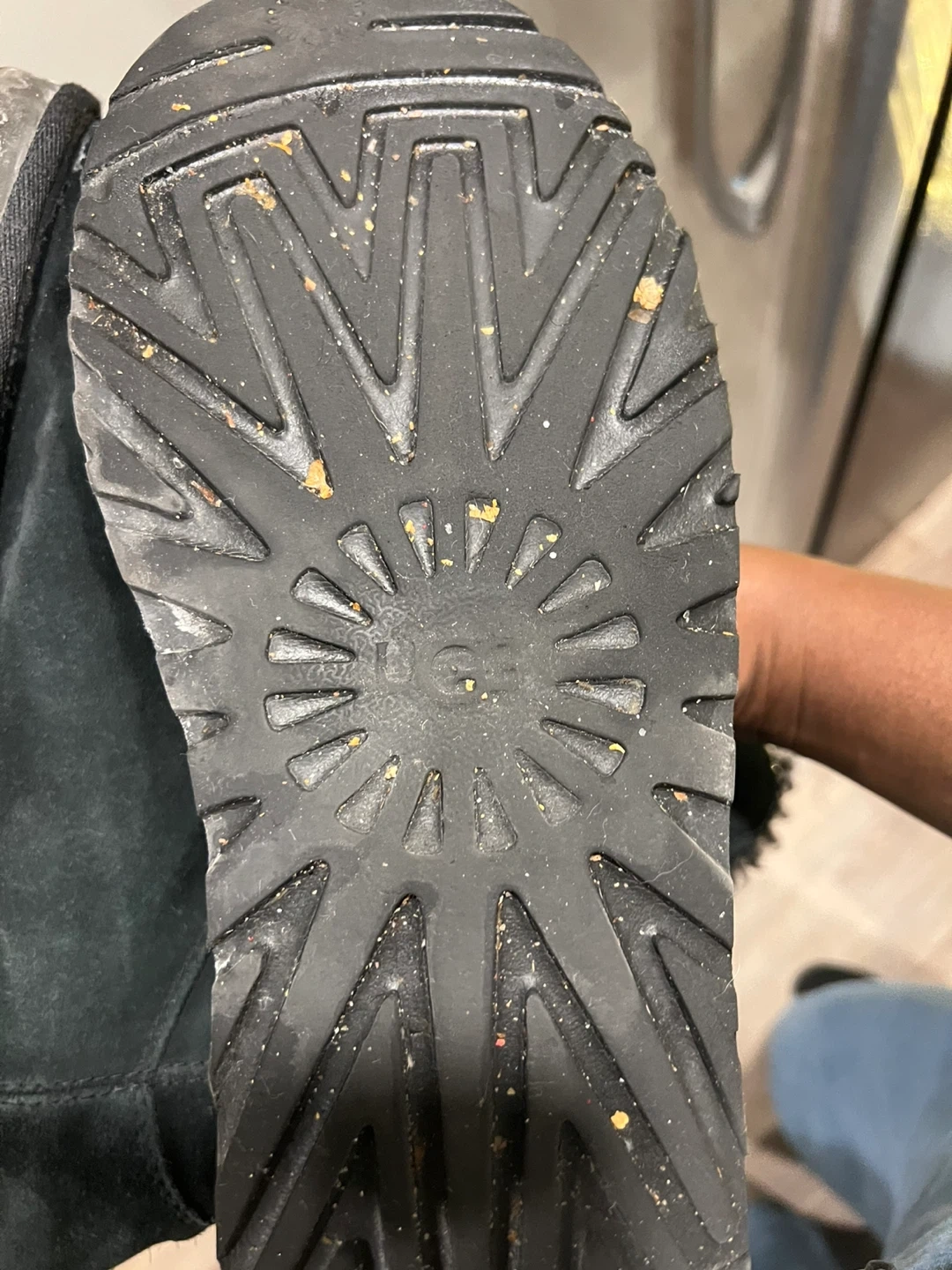 Selling a pair of Ugg boots in black. They have some signs of use, but are still in good condition. Perfect for keeping your feet warm and cozy during the colder months!