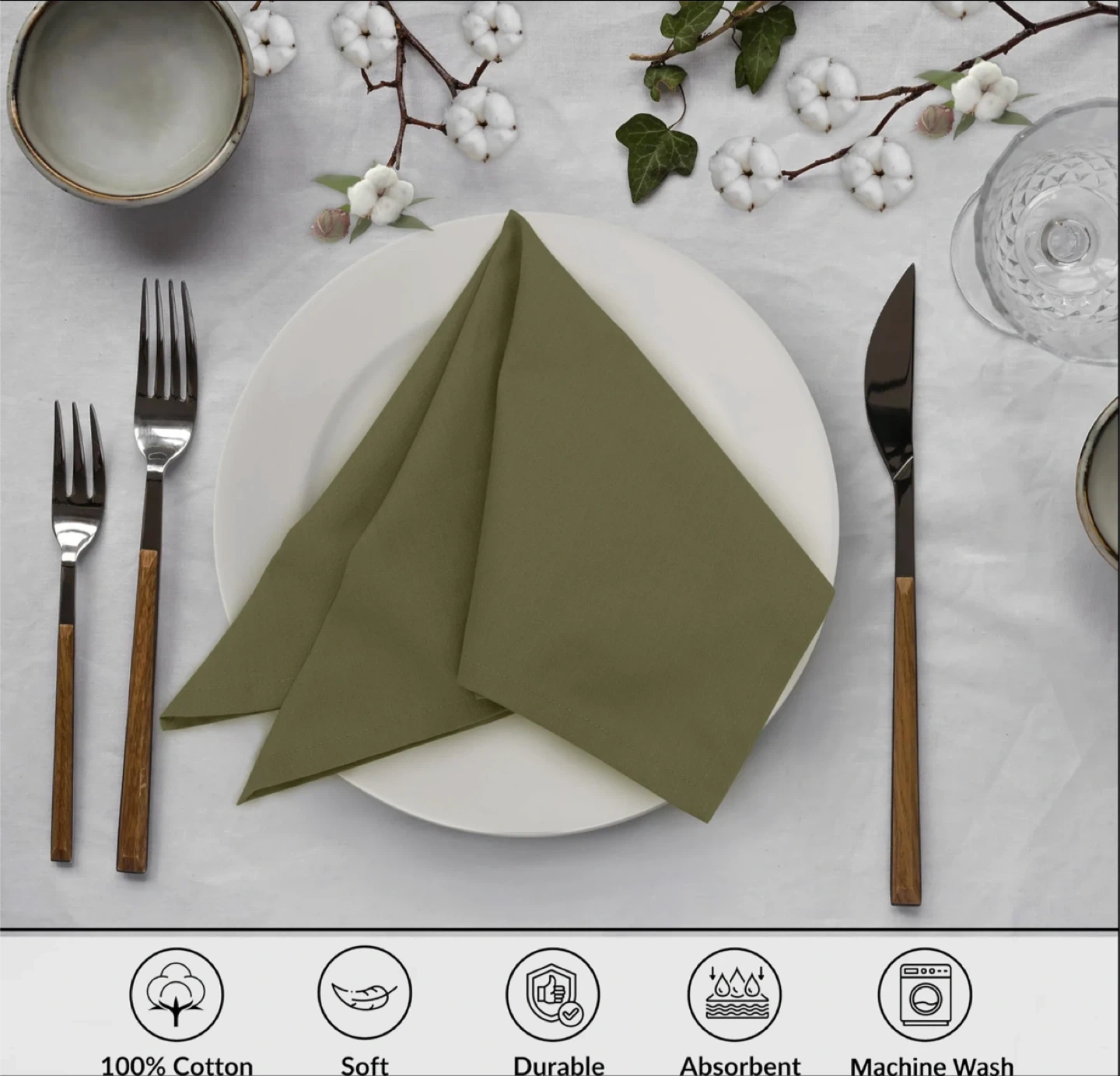 Ruvanti Cloth Napkins, Olive Green, 18"x18"