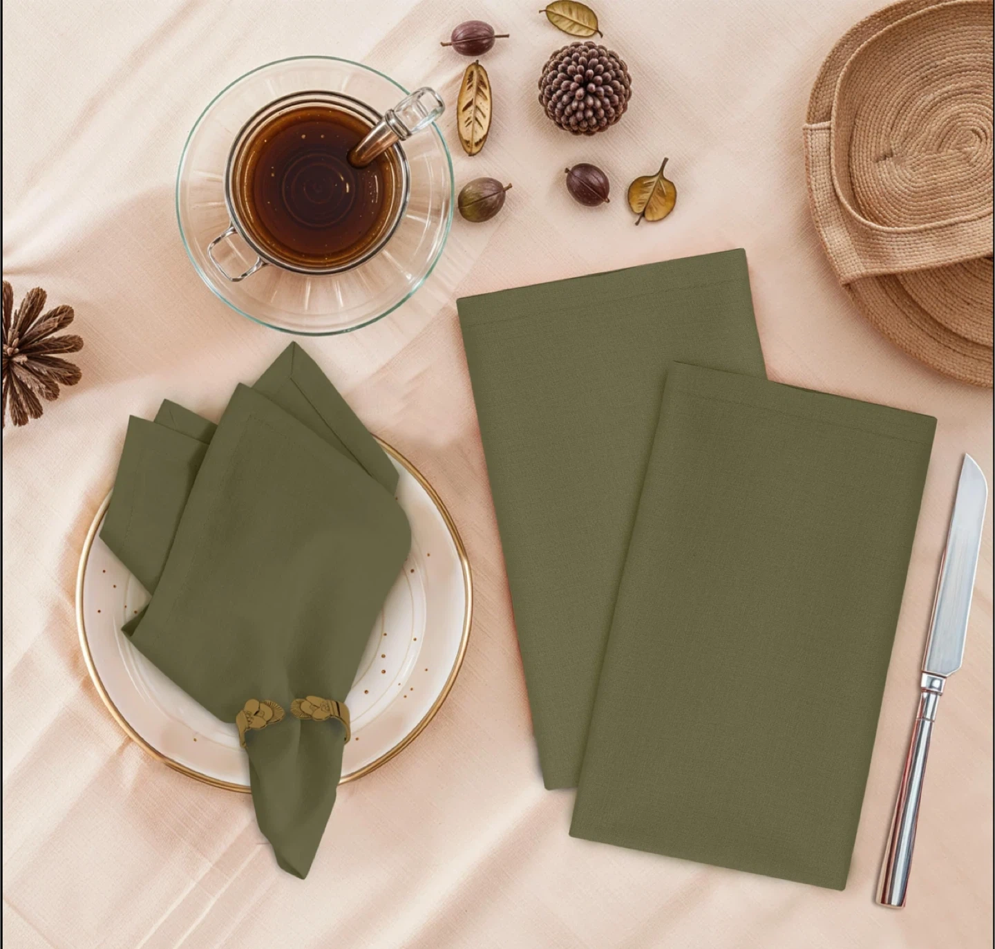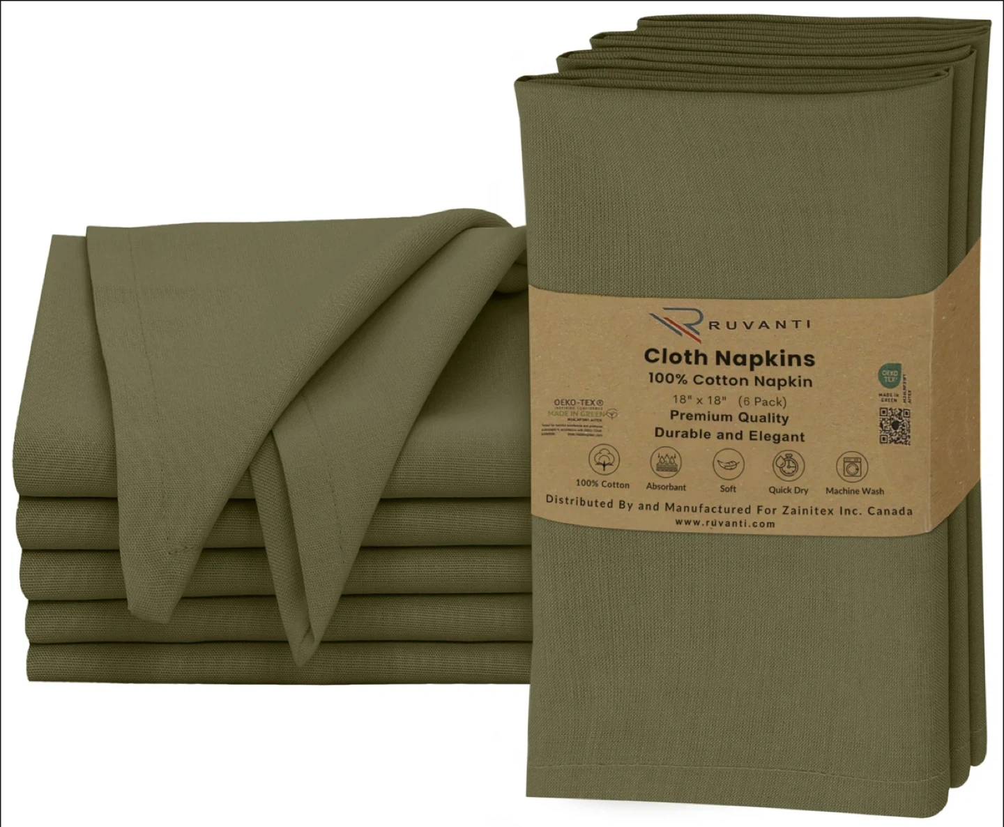 Ruvanti Cloth Napkins, Olive Green, 18"x18"