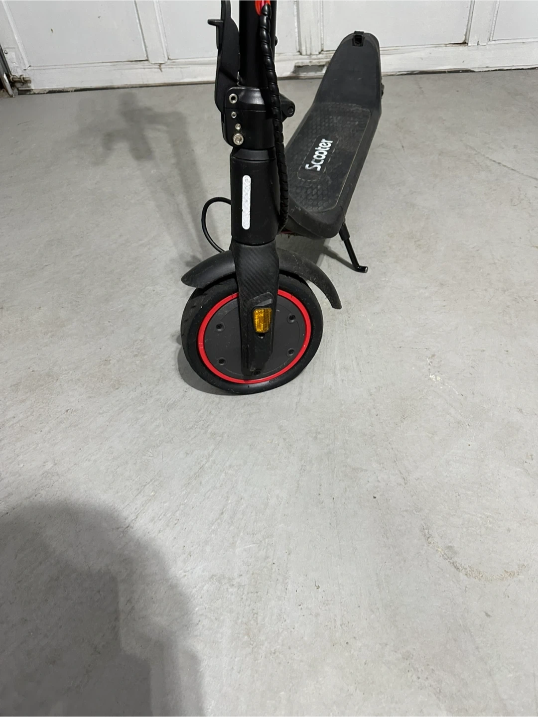 Selling an electric scooter in black. It's in good condition and ready for a new owner. Perfect for getting around town!