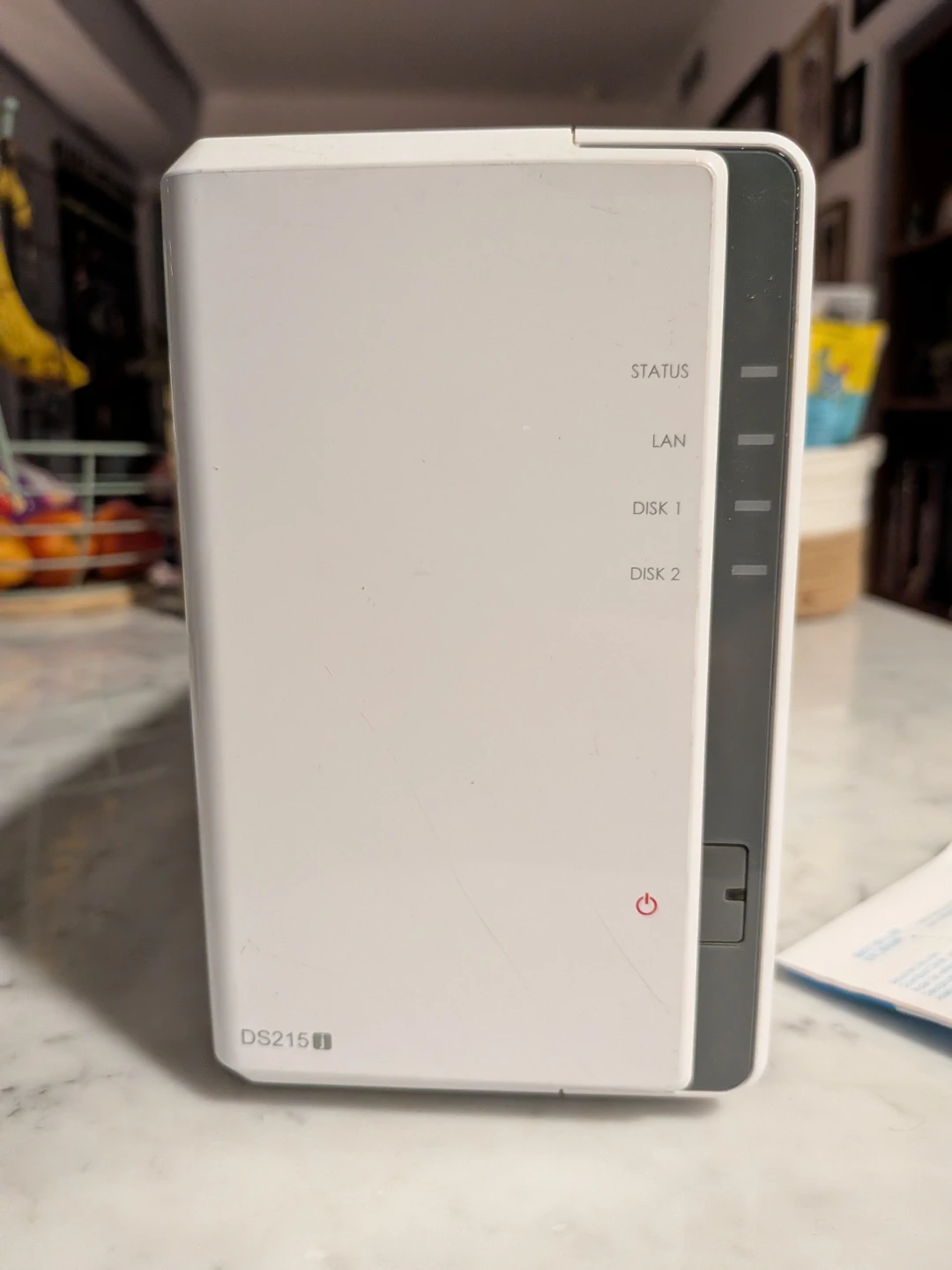 Selling a Synology DiskStation DS215j NAS server case. It's in good condition and perfect for home or small office use for file storage and sharing. Comes with the original quick setup manual. DOES NOT HAVE THE POWER CORD OR ORIGINAL BOX. Uses a standard 12V DC power adapter- the cable was lost at some point when I moved and I cannot locate it. Has two SATA drive slots. DRIVES NOT INCLUDED. Was not too tricky to set up and I am not someone who is super knowledgeable in server setup and maintenance. Used for video storage and sharing as a videographer.
