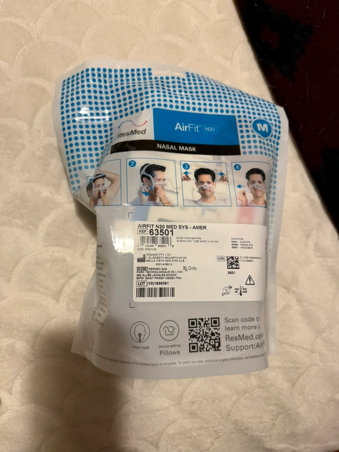 I'm selling a ResMed AirFit N20 Nasal Mask in size medium. It's brand new and still sealed in its original packaging. This mask is designed for comfort and effective sleep therapy. Feel free to reach out if you have any questions!