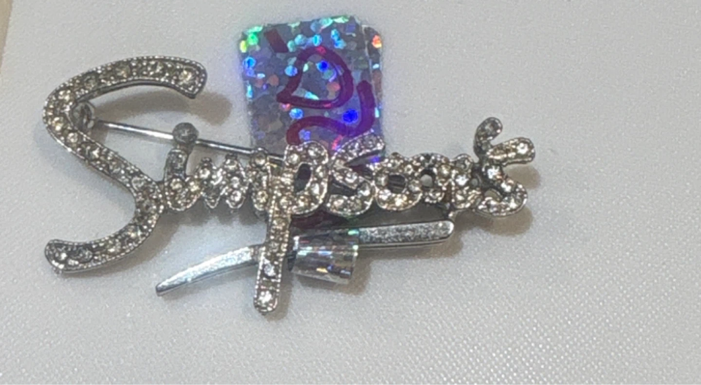 Here's a cute jewelled brooch that says 'Simpson’s ' in a fancy font. It would look great on a jacket or bag! The stones test as low grade diamonds. From what I can tell this was given to Simpsons employees at 50 years of service