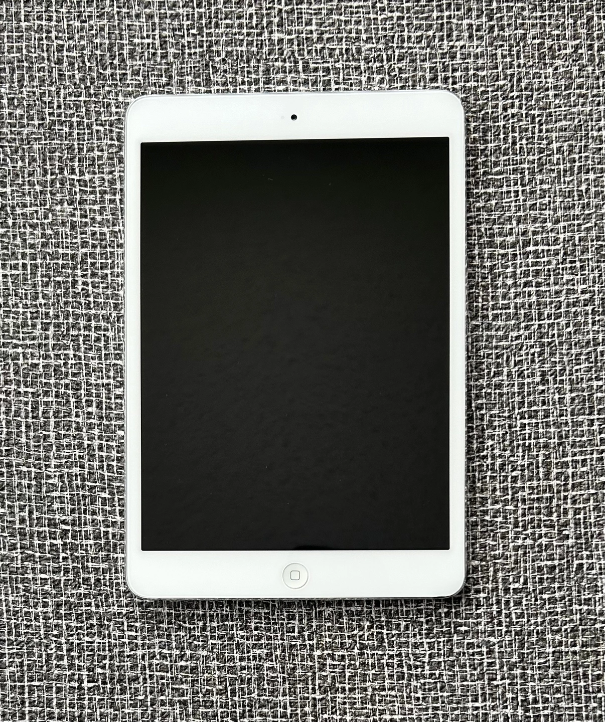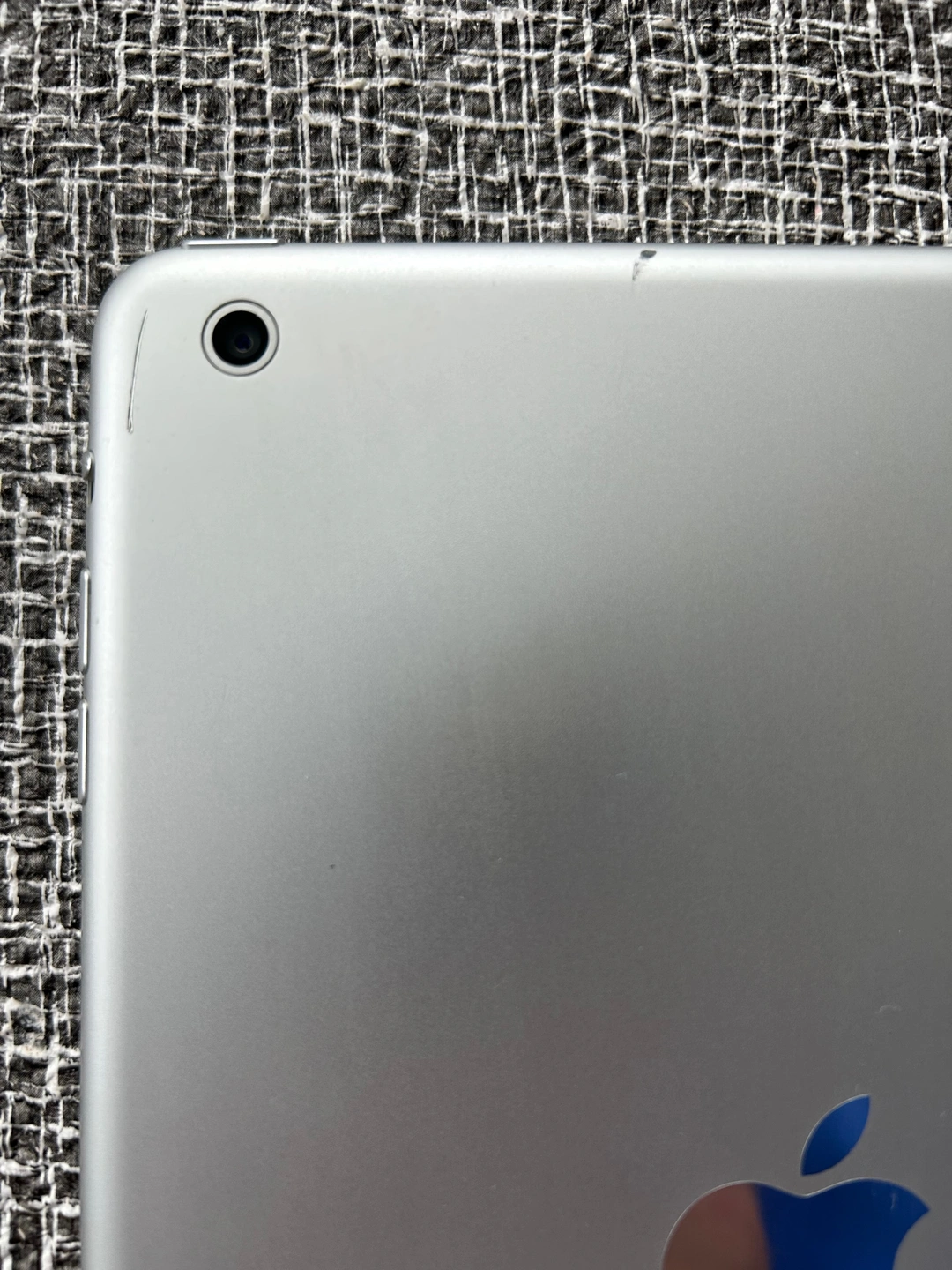 Lightweight silver iPad mini with 56 GB of storage. Has a few dents and scratches, but works great!