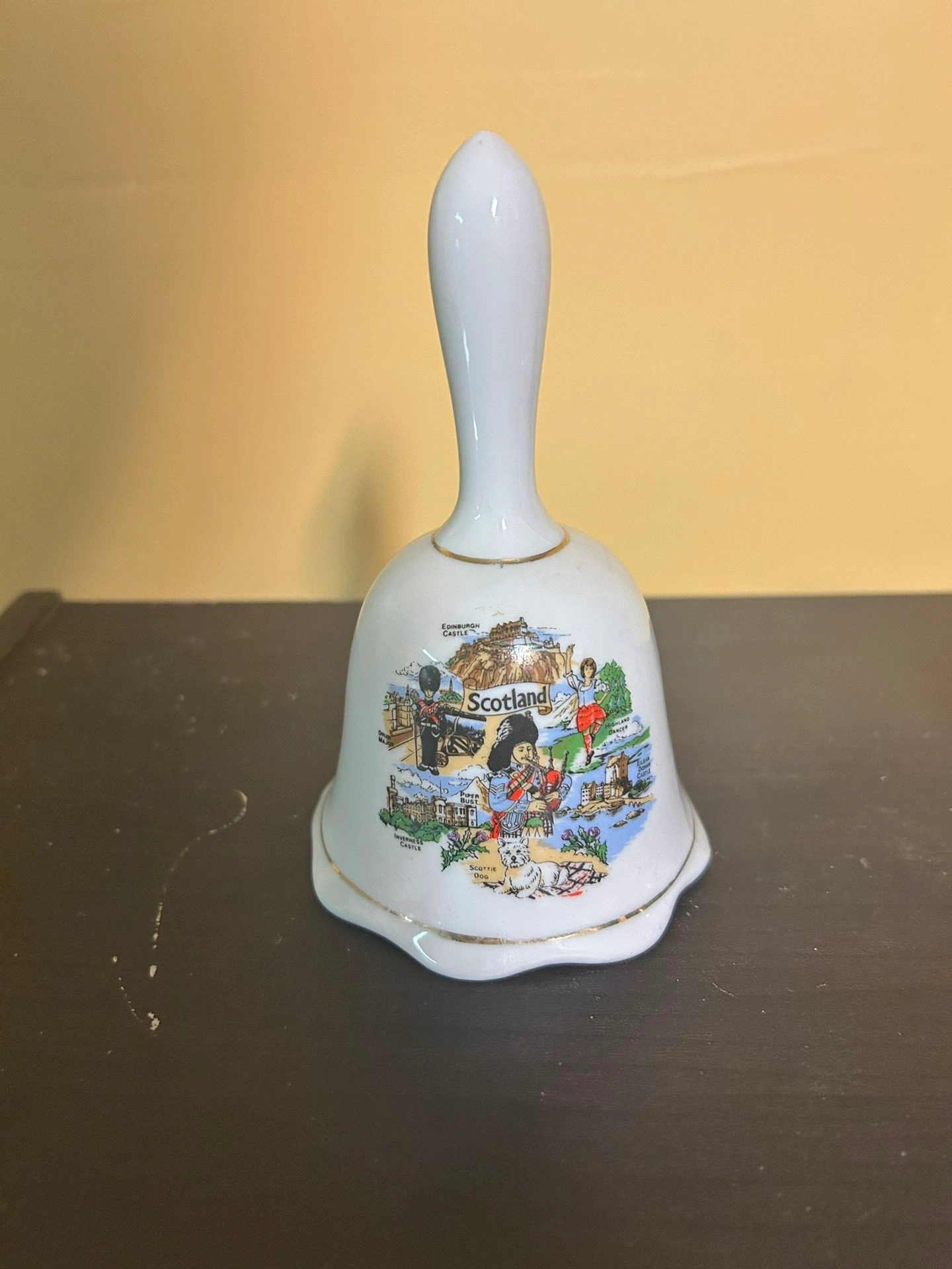 Buy & SellVintage Scotland Souvenir Porcelain BellVintage Scotland Souvenir Porcelain Bell$10Small white porcelain bell. Gold trim. Scotland scenes. Collectible souvenir.WHERE TO MEETCheck LocationView MapSELLERverifiedRebecca WOceanside650 reviews0 chats·0 favorites·0 views