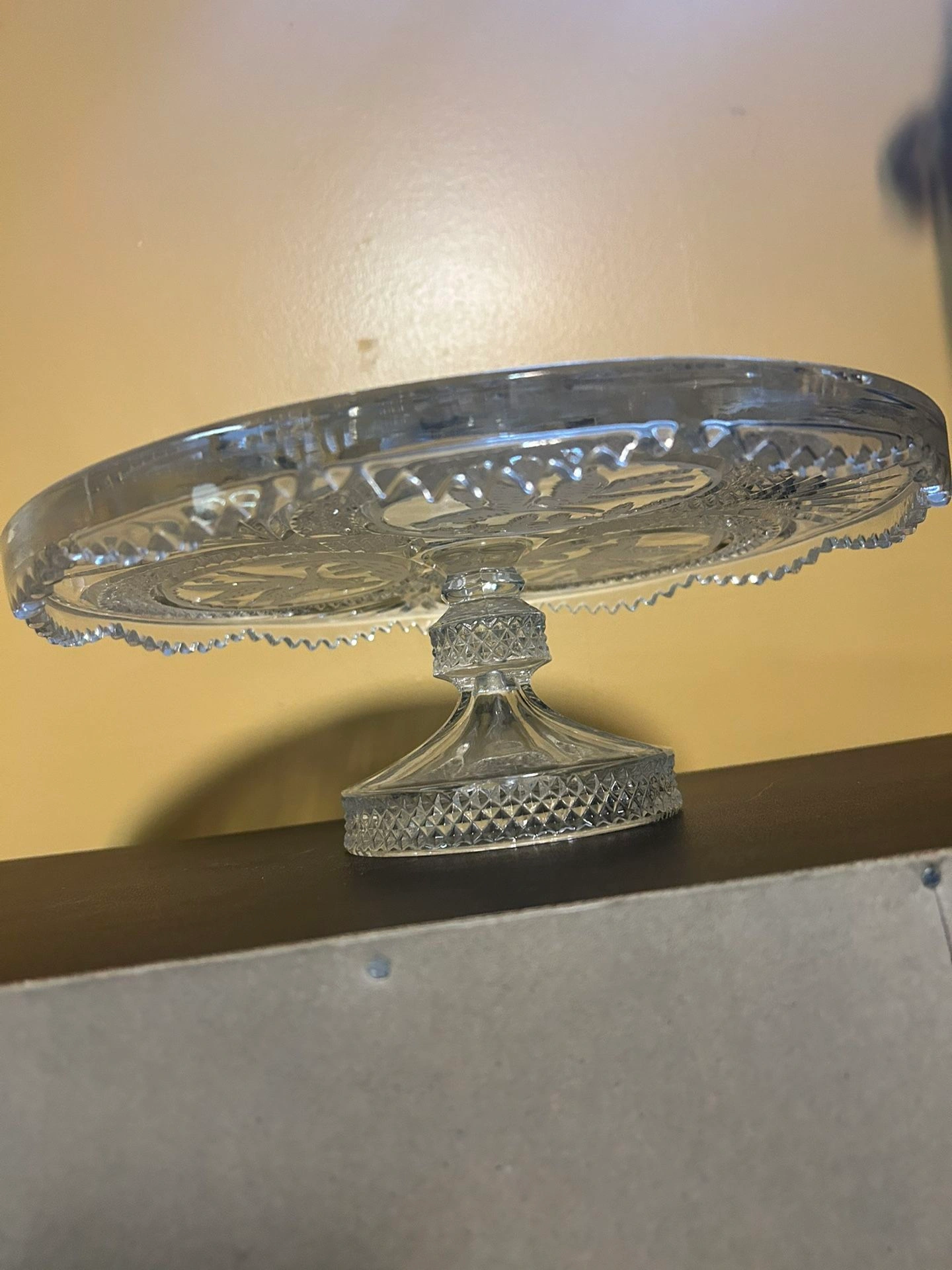 Vintage Crystal Cake Stand with Bird Design