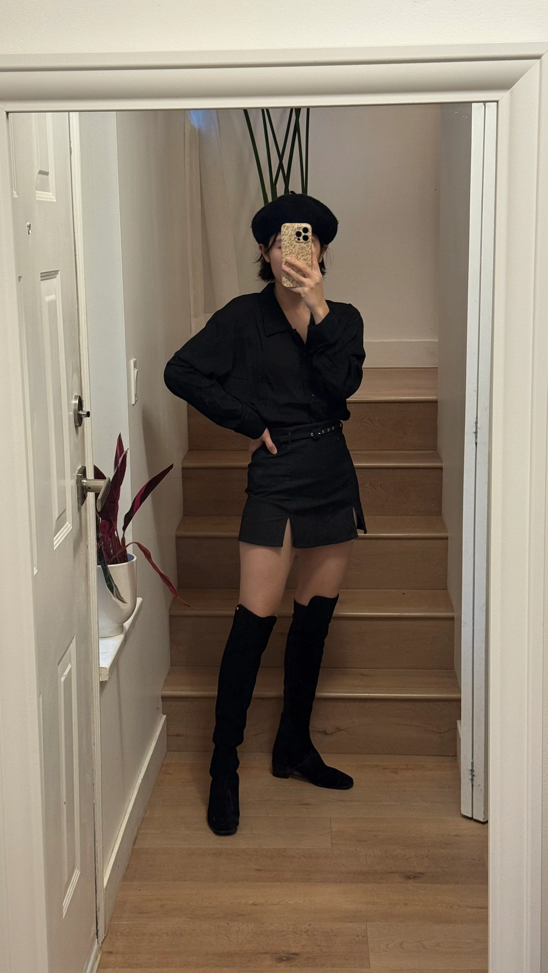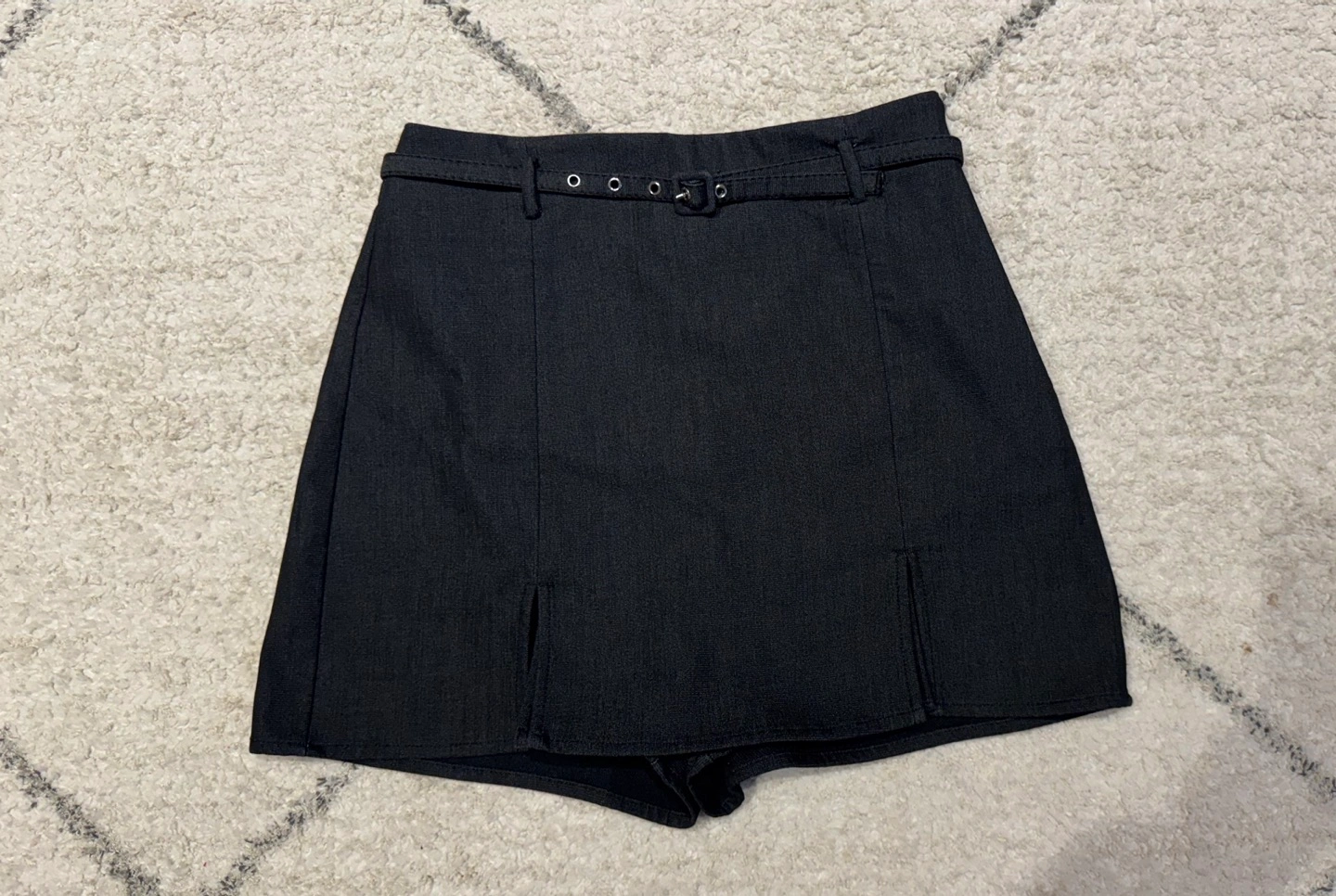 ZARA black grey A-Line Mini Skirt with Side Buckle Detail
