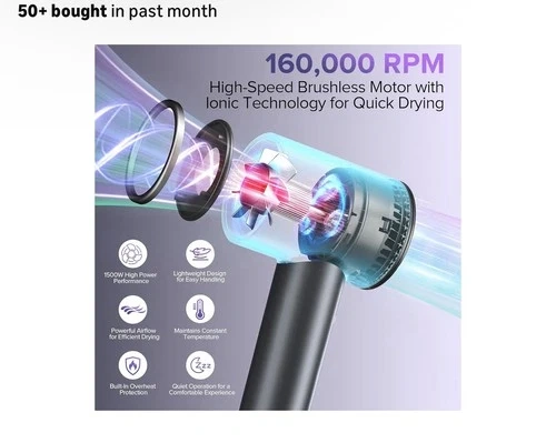 • 🔥 160,000 RPM - ultra fast drying without damaging the hair