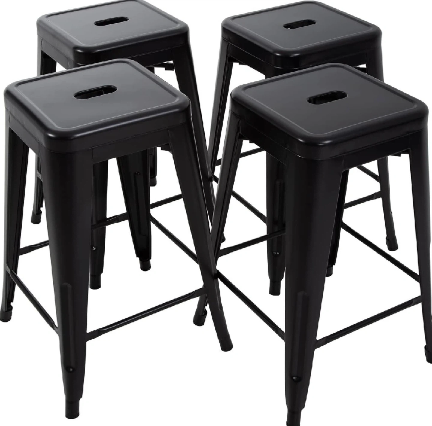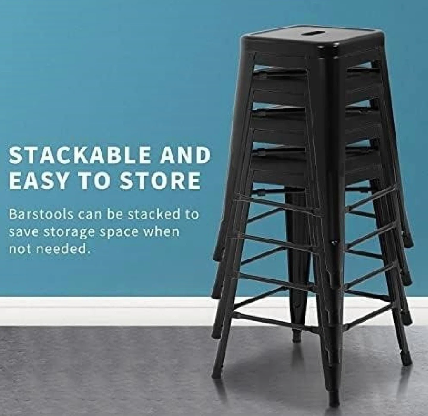 These Brand New in Box 30” Metal Bar Stools come in a set of 5 and feature a sleek black finish, perfect for adding a modern touch to your kitchen or bar area. Their sturdy metal construction ensures durability, while the comfortable height makes them ideal for counters and high tables.