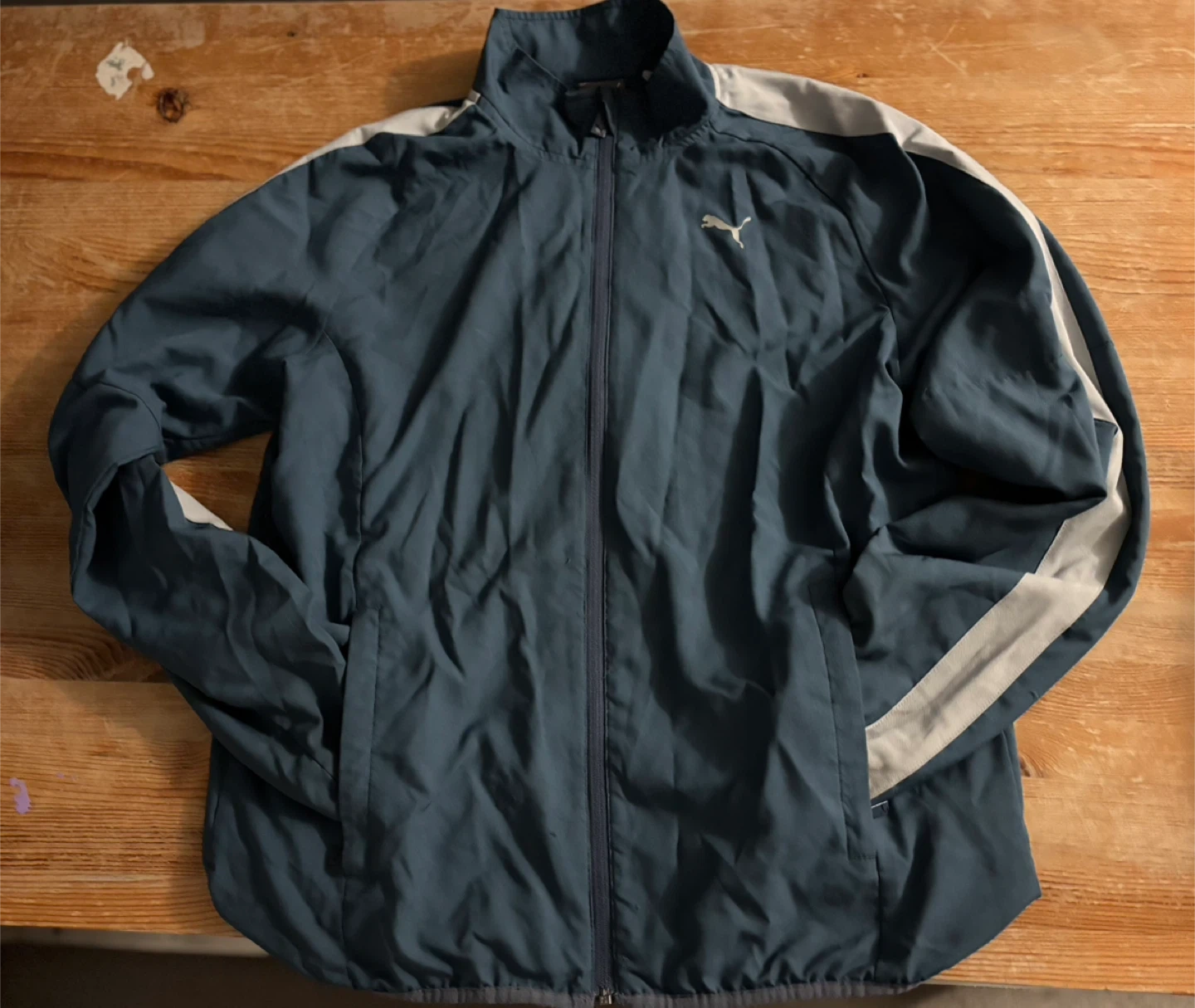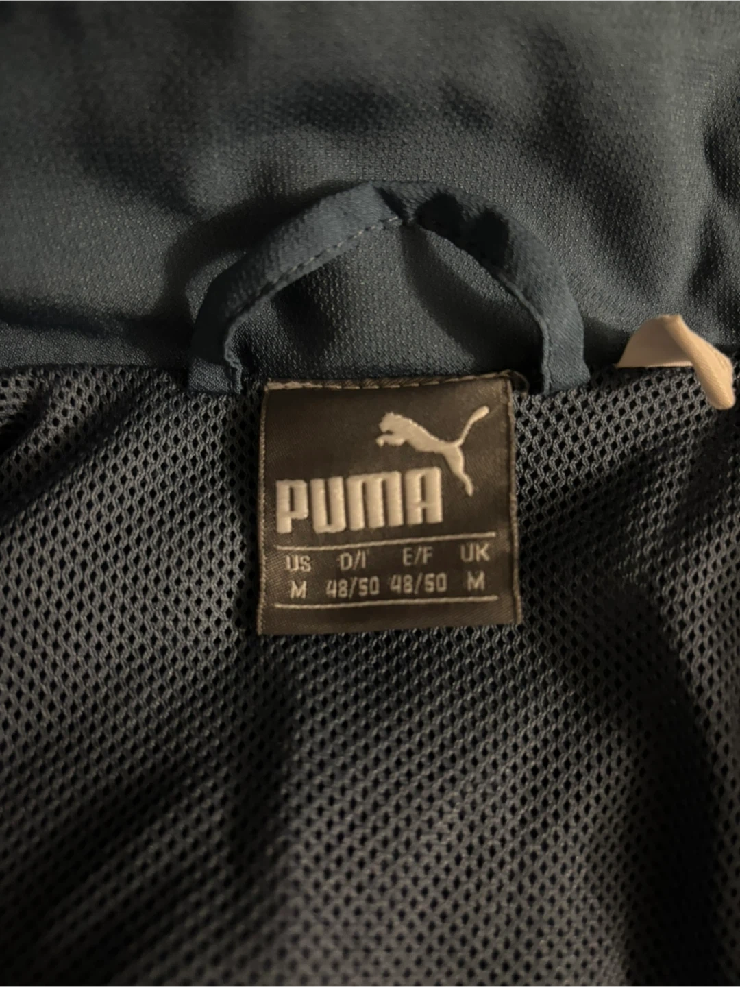Selling a Puma track jacket in size medium. It's in good condition and ready for a new owner! The jacket features a full zip and the classic Puma logo. Perfect for workouts or casual wear