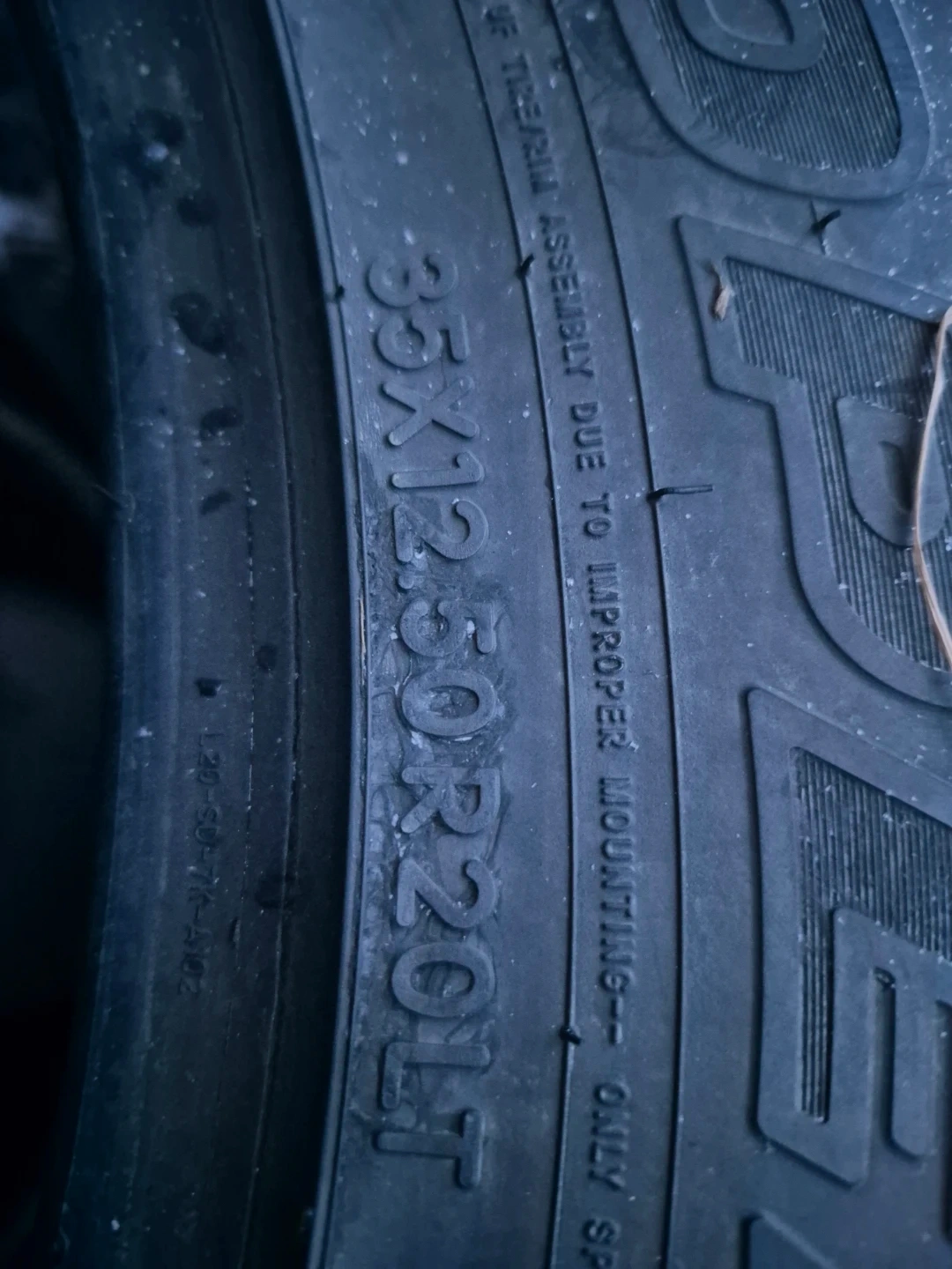 Selling a Toyo four Tire, + one extra tire, size 35x12.50R20LT. It's in good condition and ready for your truck or SUV. $630