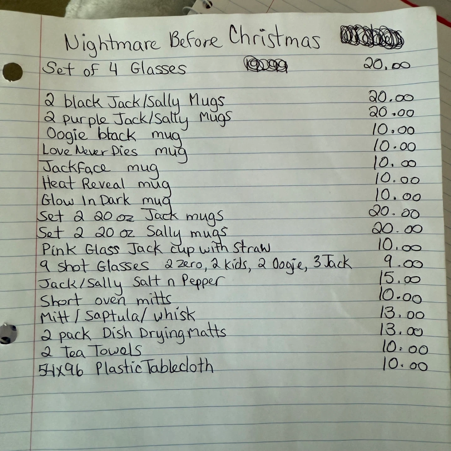 Selling a collection of Disney's The Nightmare Before Christmas items! There are mugs, salt & pepper shakers, and more. Perfect for any fan of the movie! Prices are written out and on page 10. Firm on prices.