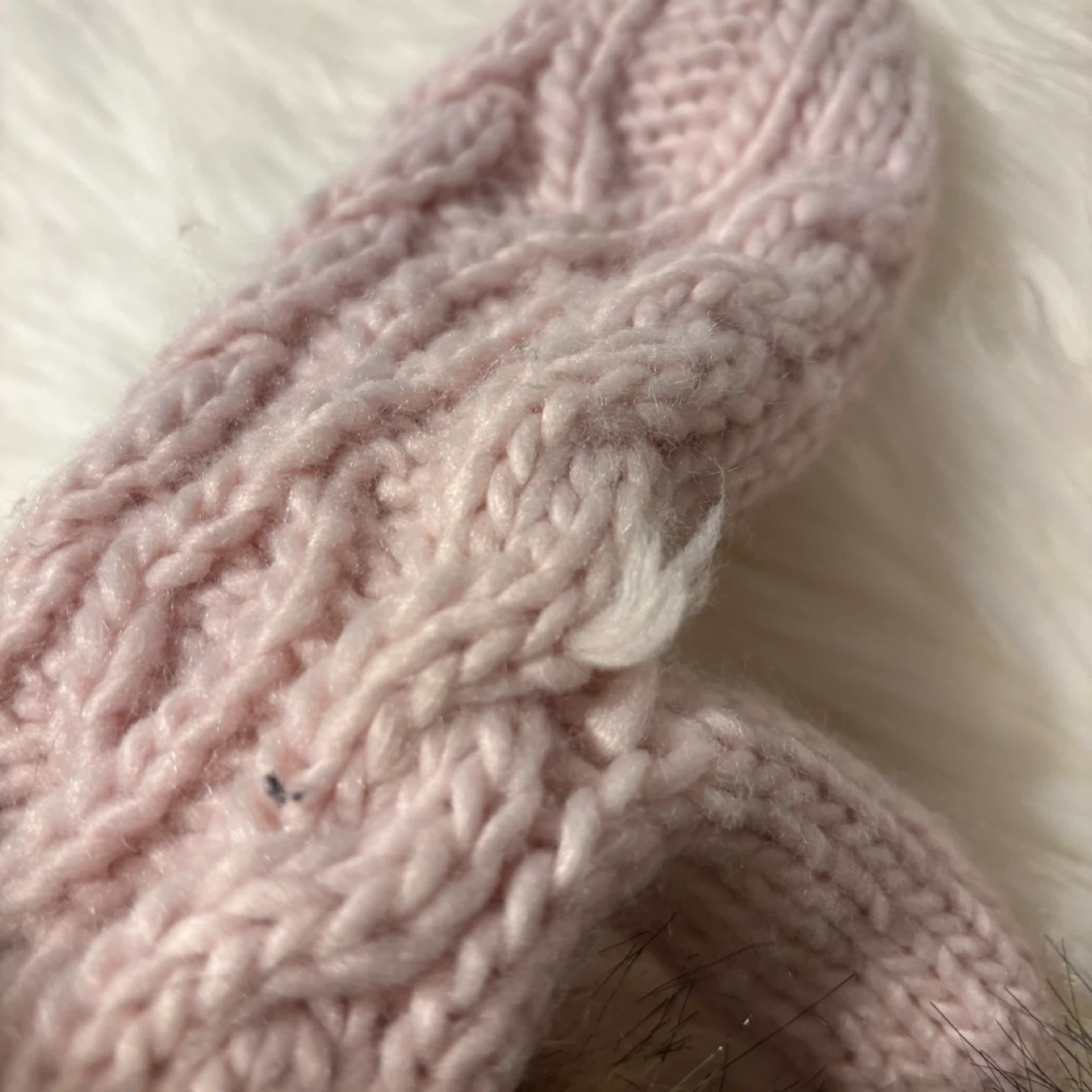 Selling a pair of cute pink mittens! They have a faux fur cuff for extra warmth and style. There are a few small signs of wear as shown in the pictures, but they're still in good condition and ready to keep your hands cozy this winter